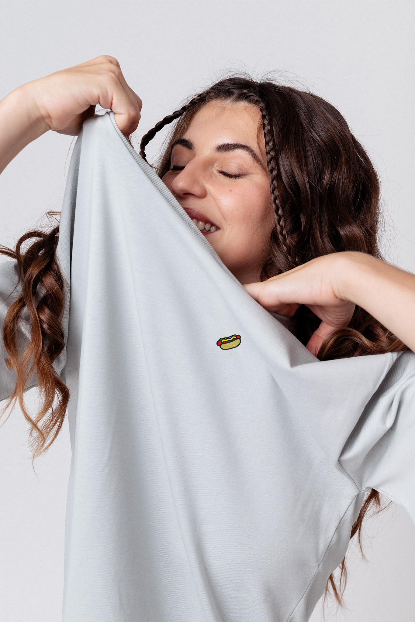Heavy Oversized Bio Baumwoll T-Shirt mit extra schwerem Stoff (230gsm) und gesticktem Hot Dog Design