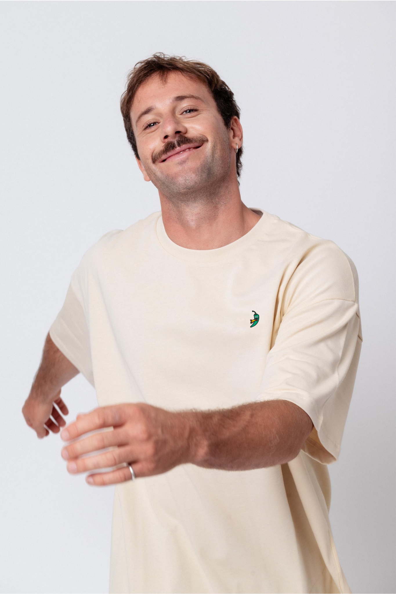 Heavy Oversized Bio Baumwoll T-Shirt mit extra schwerem Stoff (230gsm) und gesticktem Jalapeno Design