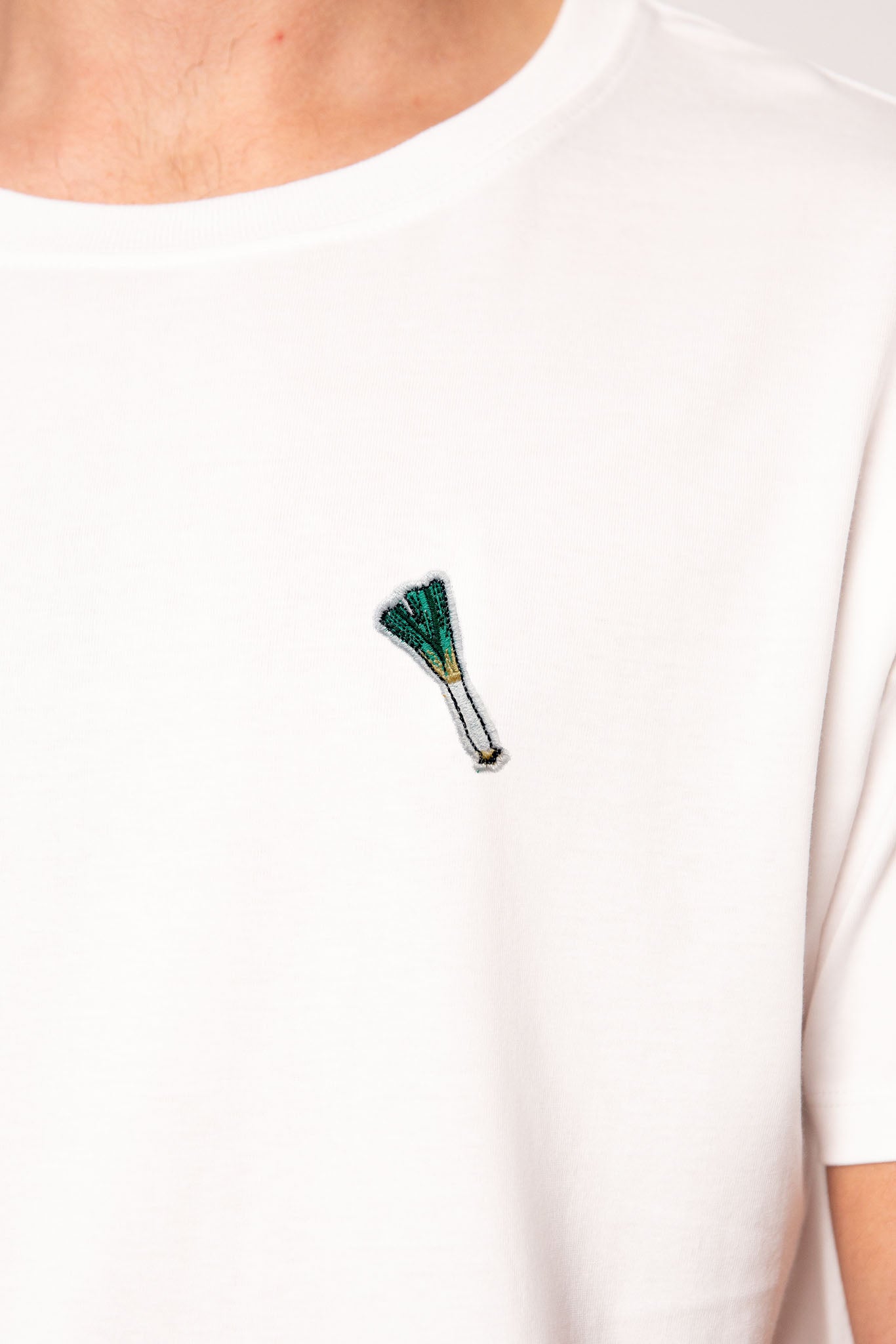 Besticktes Bio Baumwoll Unisex T-Shirt mit schwerem Stoff (190gsm) und gesticktem Lauch Design