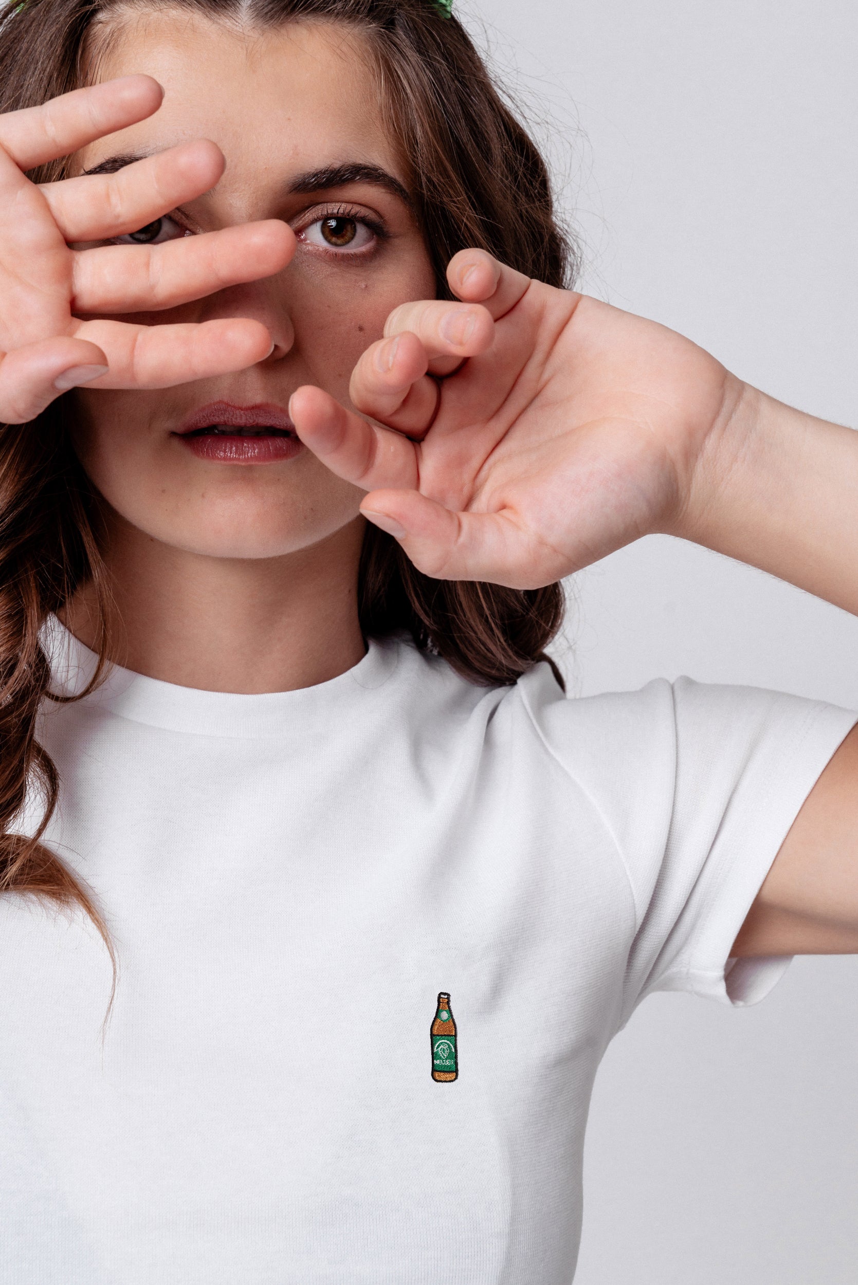 Super hochwertiges Bio Baumwoll Cropped T-Shirt mit gesticktem Starnberg Bräu Design in drei verschiedenen Schnitt-Varianten: Ripped, Regular & Oversized