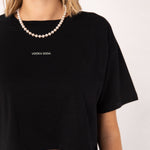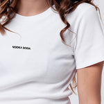 Super hochwertiges Bio Baumwoll Cropped T-Shirt mit gesticktem Vodka Soda Schriftzug in drei verschiedenen Schnitt-Varianten: Ripped, Regular & Oversized