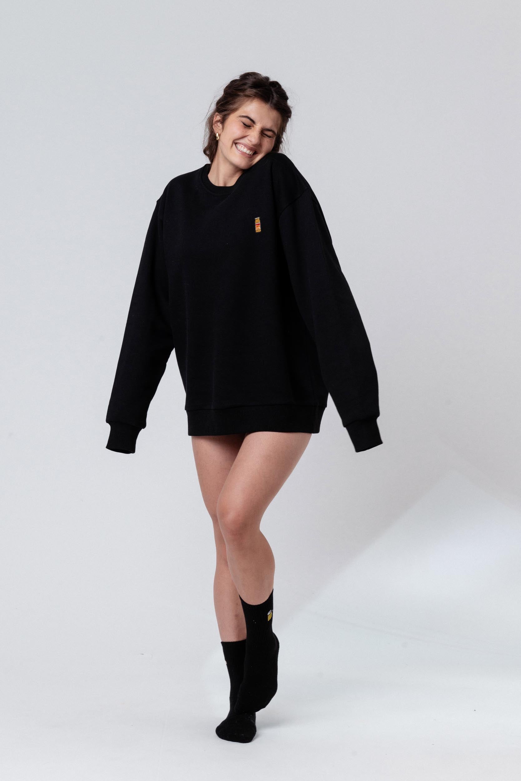 Bestickter Bio Baumwoll Unisex Pullover mit schwerem Stoff (320gsm) und offiziellem gesticktem Voelkel Ingwer Shot  Design