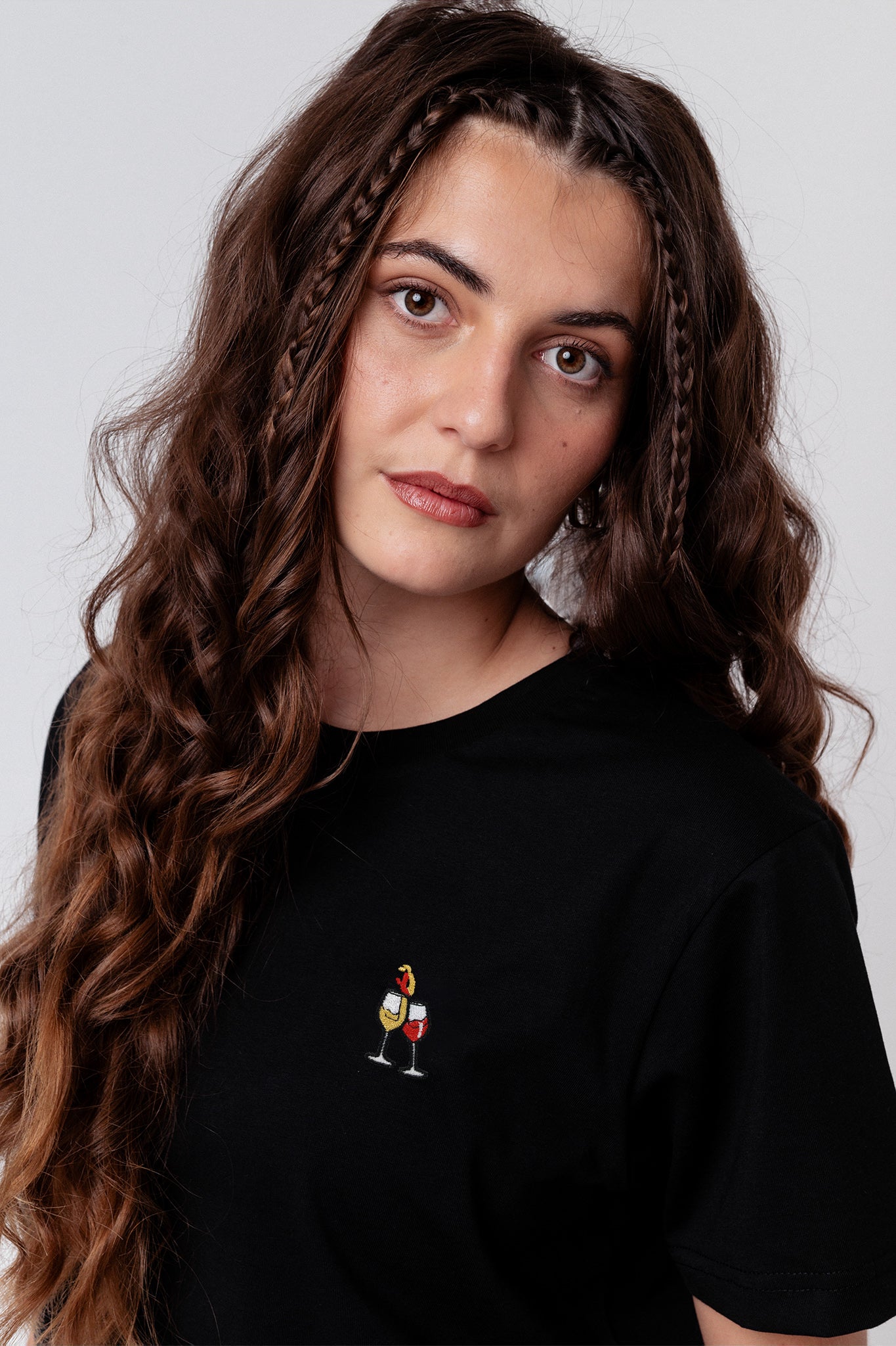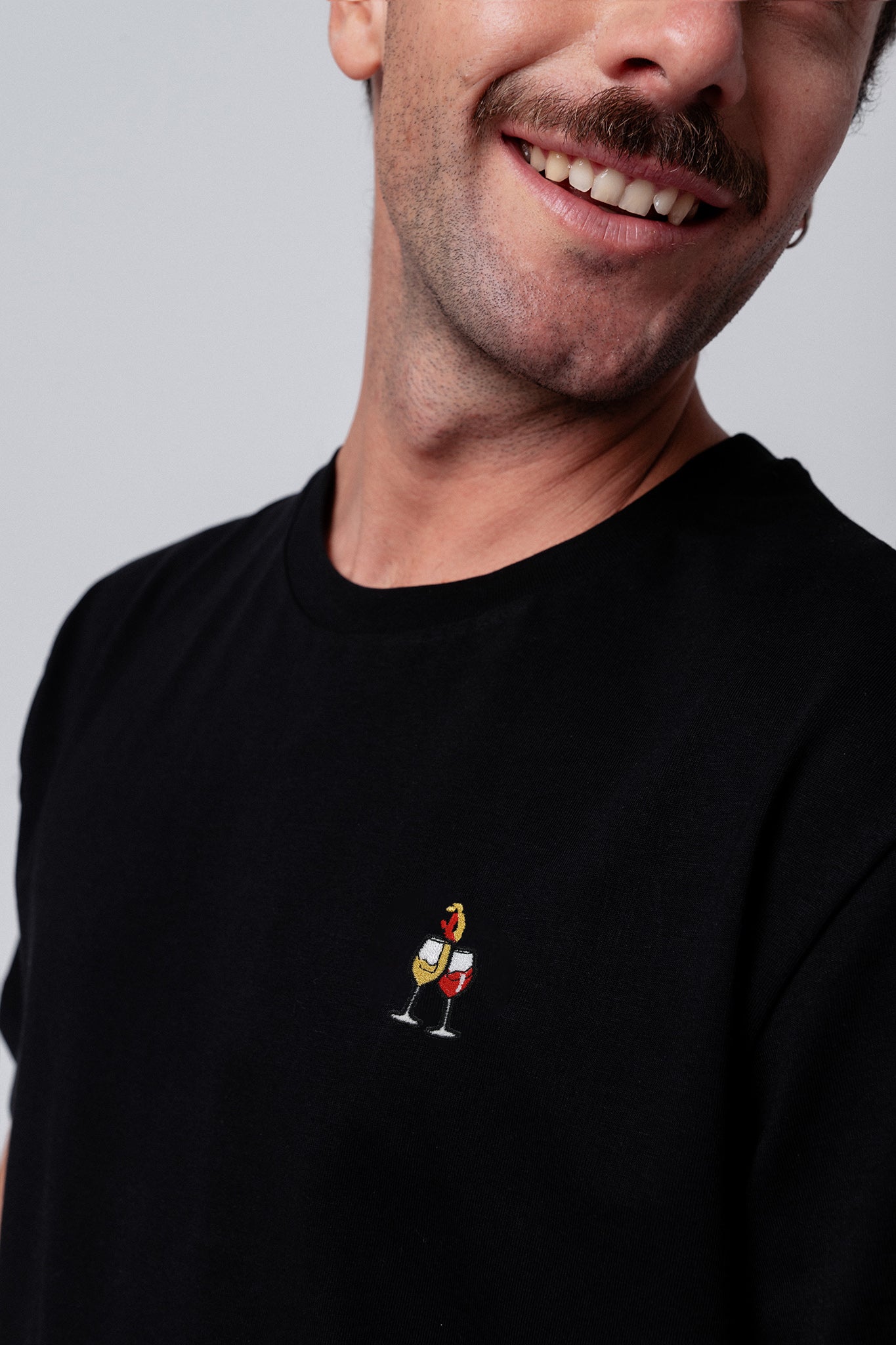 Besticktes Bio Baumwoll Unisex T-Shirt mit schwerem Stoff (190gsm) und gesticktem Wein Duett Design