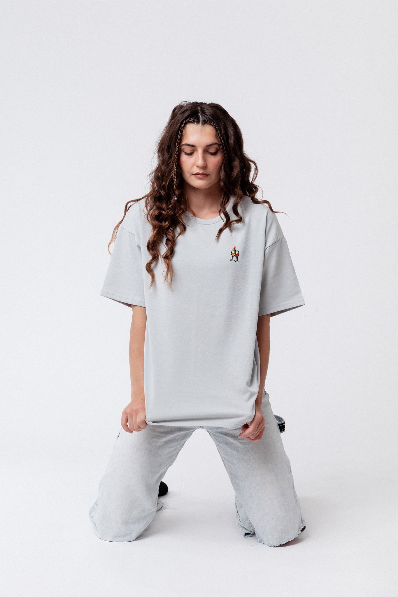 Heavy Oversized Bio Baumwoll T-Shirt mit extra schwerem Stoff (230gsm) und dem gestickten Wein Duett Design