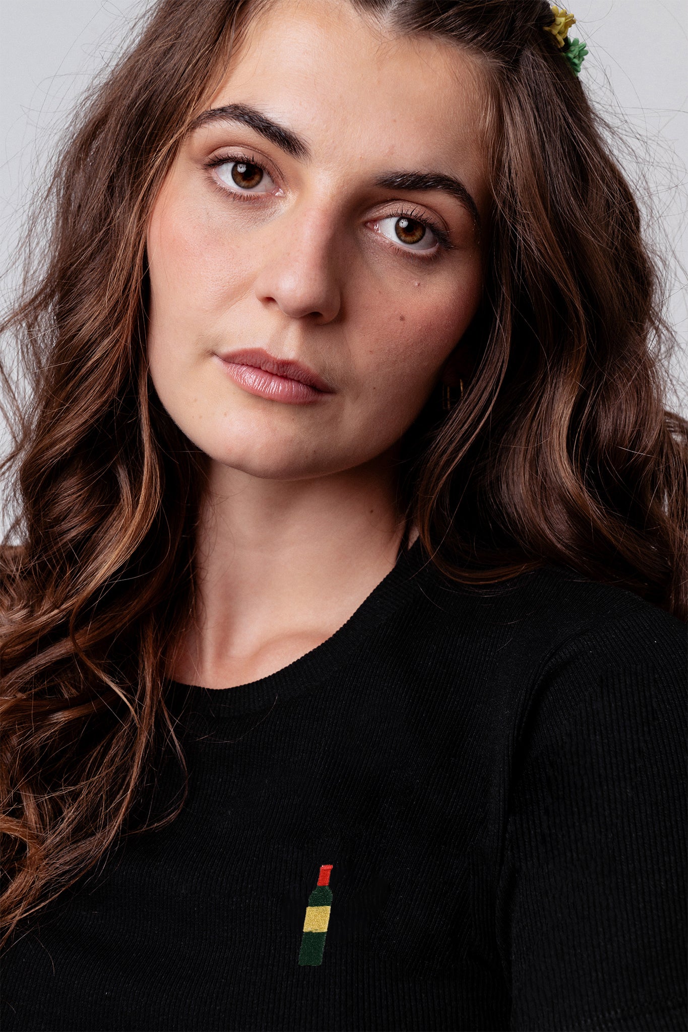 Weinflasche | Besticktes Bio Baumwoll Cropped T-Shirt