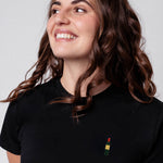 Camiseta de mujer de algodón orgánico de gran calidad con tejido extremadamente cómodo (155 g/m²) y diseño de botella de vino bordada.