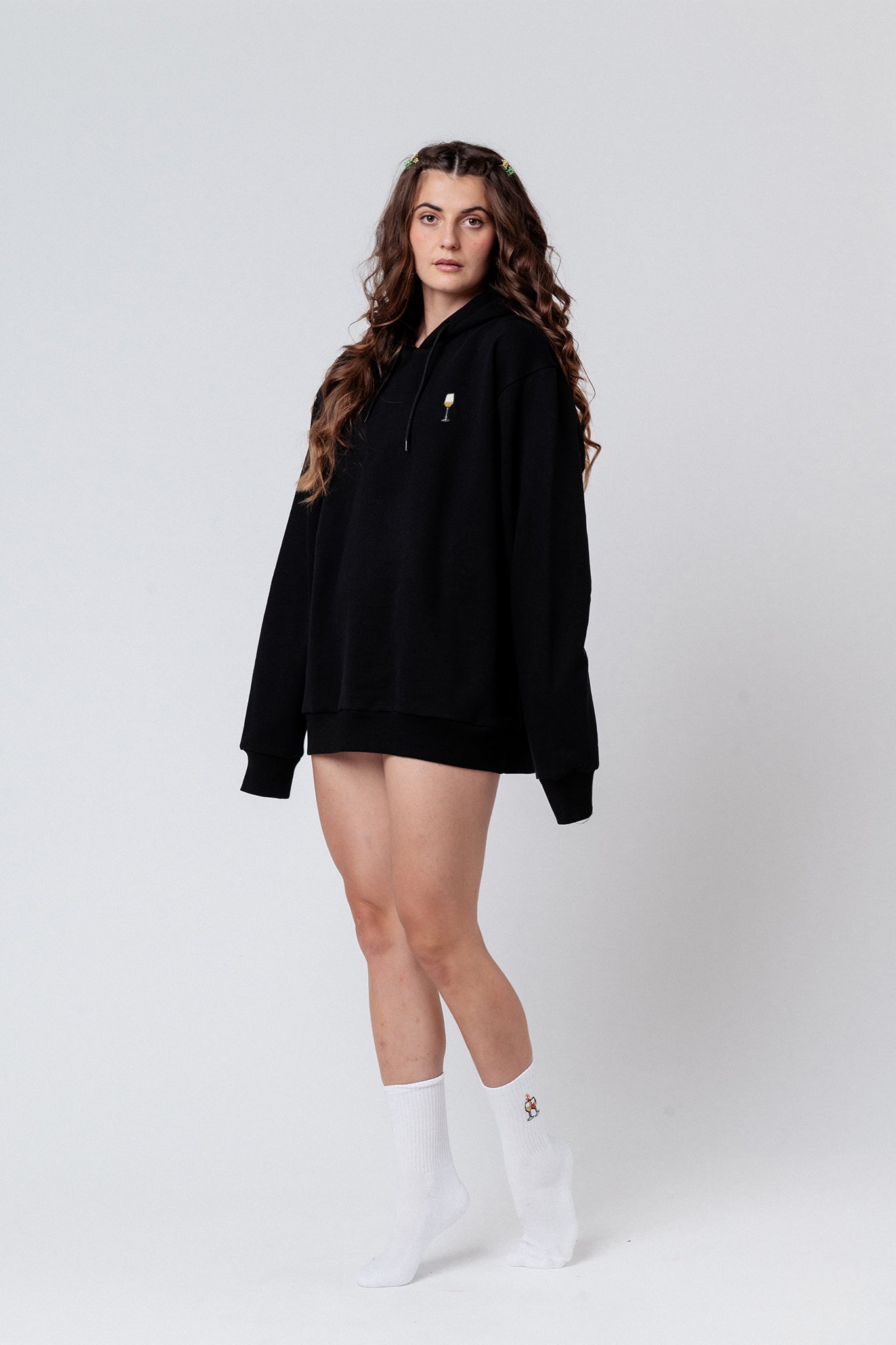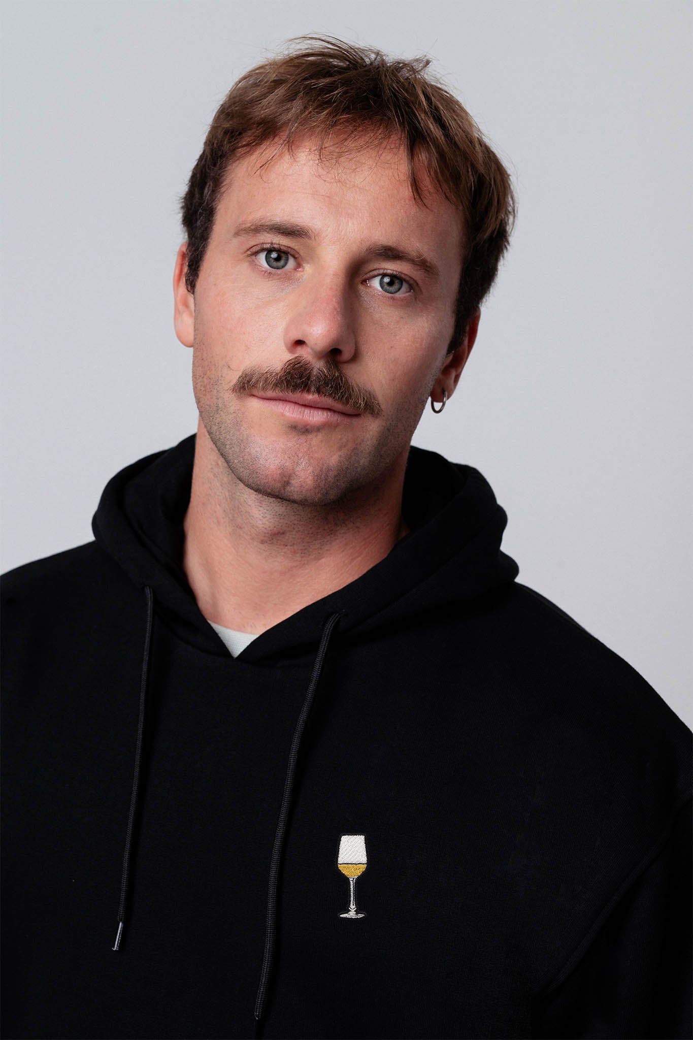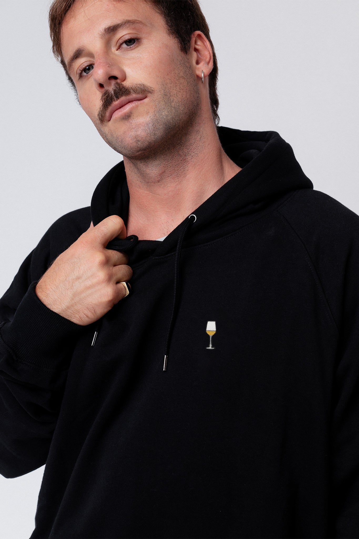 Super hochwertiger Bio Baumwoll Unisex Hoodie mit schwerem Stoff (350gsm) und gesticktem Weißwein Design
