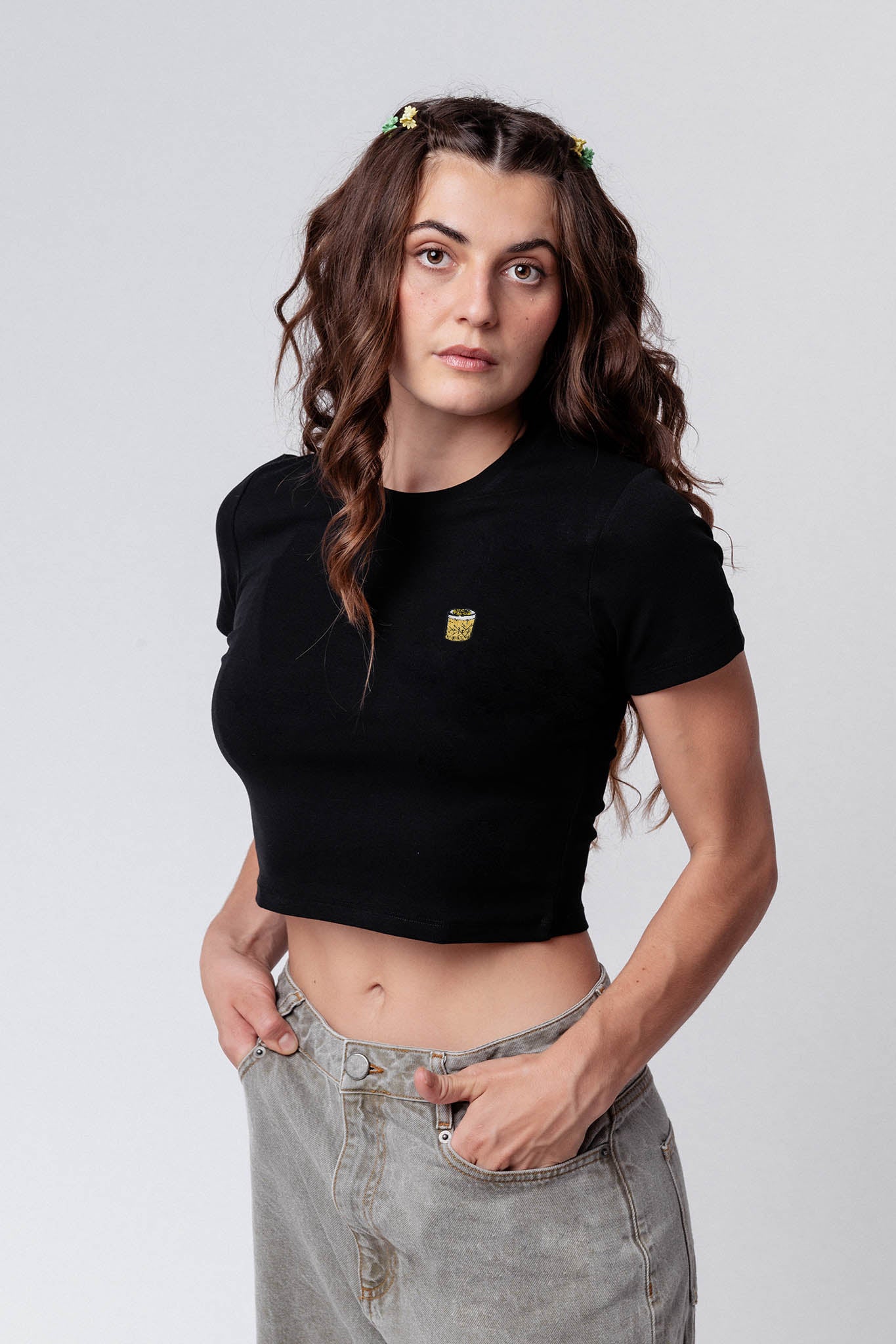 Whisky Sour | Besticktes Bio Baumwoll Cropped T-Shirt