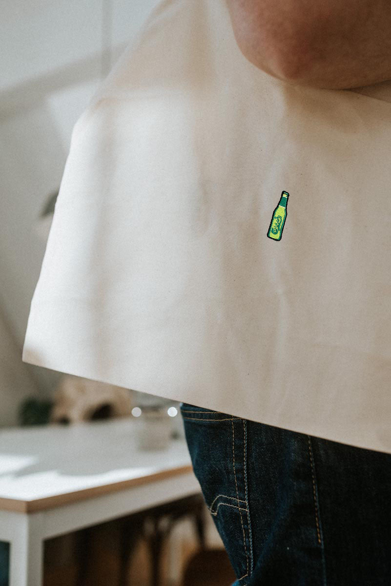 Bolsa de algodón orgánico bordada y producida de forma justa con el diseño de Carlsberg.