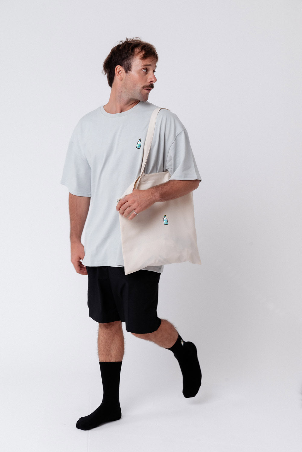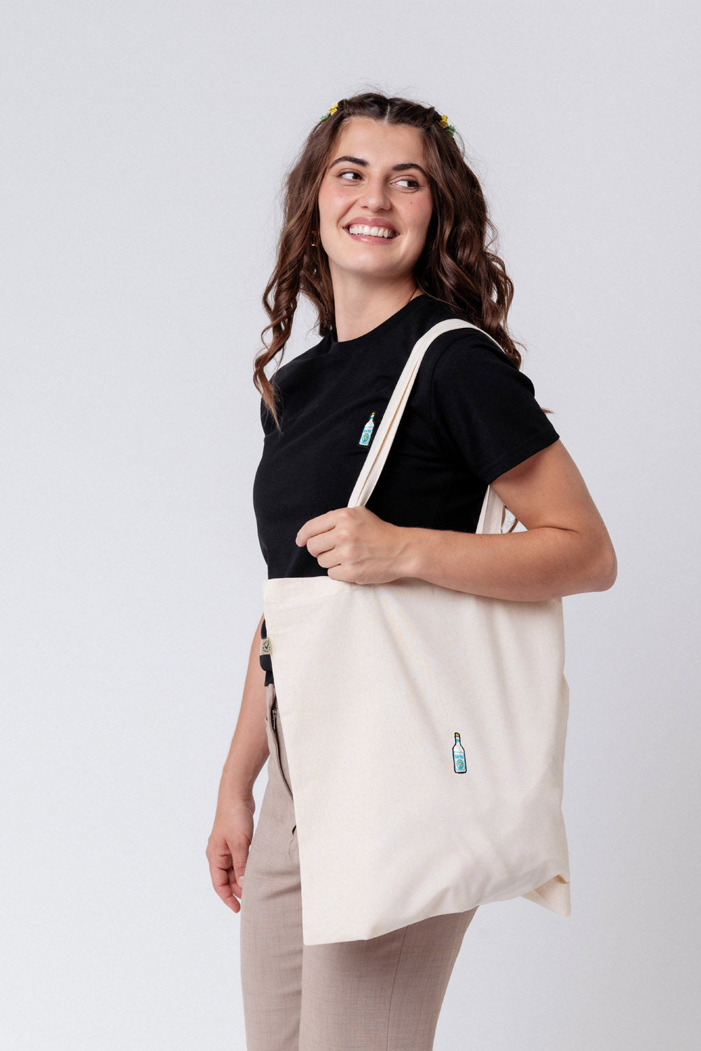 Bestickte, fair produzierte Bio-Baumwoll-Tragetasche im offiziellen GIN SUL Design.