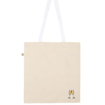 Bolsa de algodón orgánico bordada, de producción justa, con diseño champán.