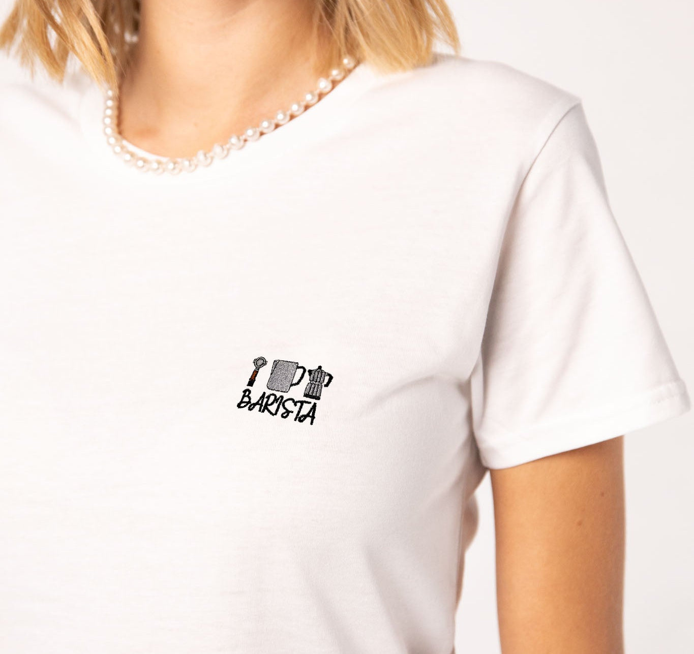 Hochwertige Stickerei auf weicher, atmungsaktiver Bio-Baumwolle.
