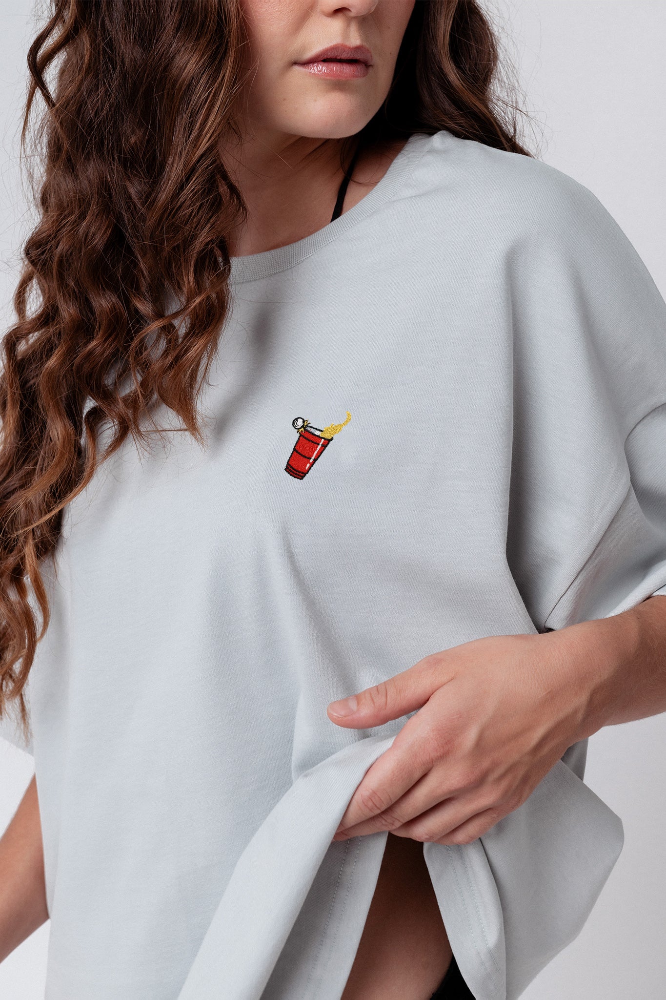 Heavy Oversized Bio Baumwoll T-Shirt mit extra schwerem Stoff (230gsm) und gesticktem Beerpong Randtreffer Design