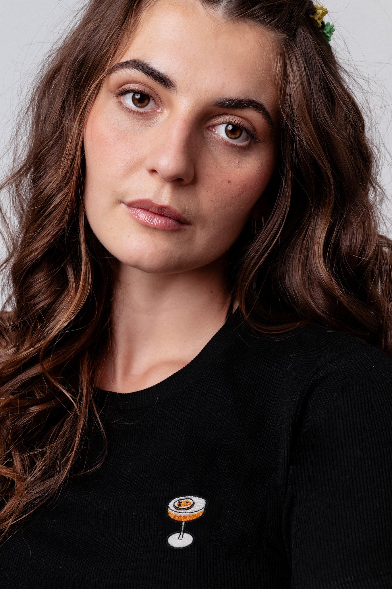 Super hochwertiges Bio Baumwoll Cropped T-Shirt mit gesticktem Pornstar Martini Design in drei verschiedenen Schnitt-Varianten: Ripped, Regular & Oversized