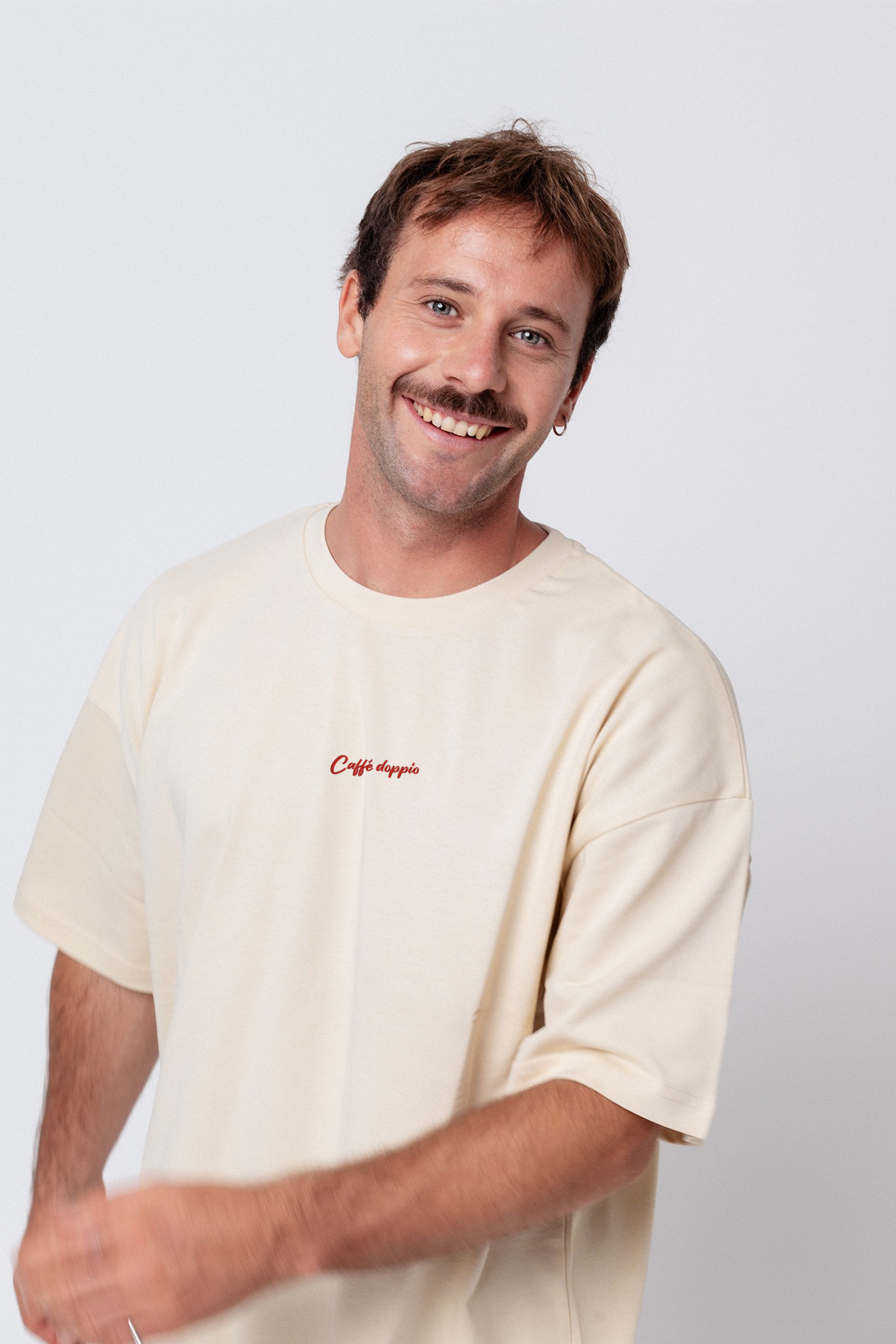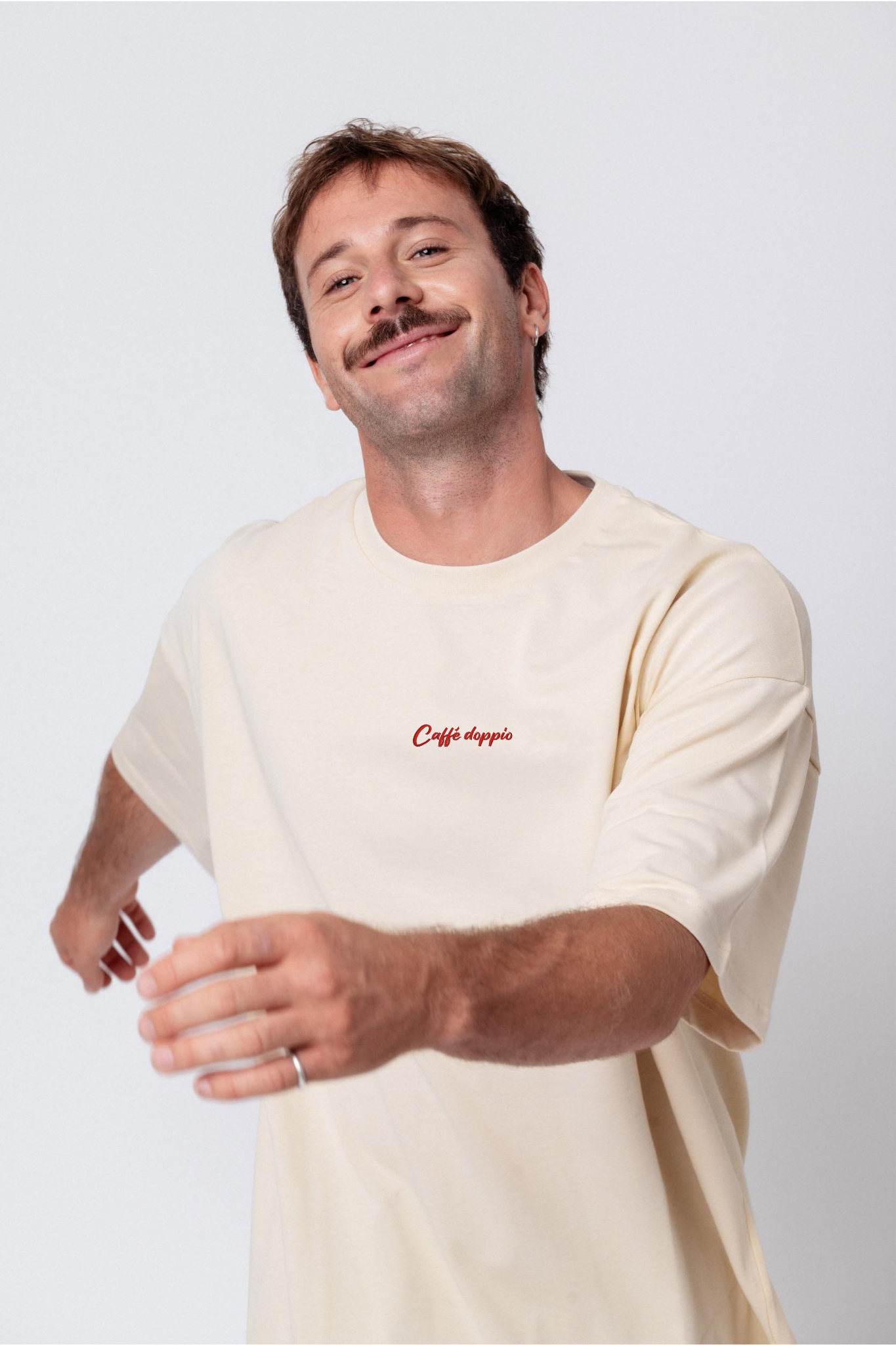 Heavy Oversized Bio Baumwoll T-Shirt mit extra schwerem Stoff (230gsm) und gesticktem Caffé doppio Design