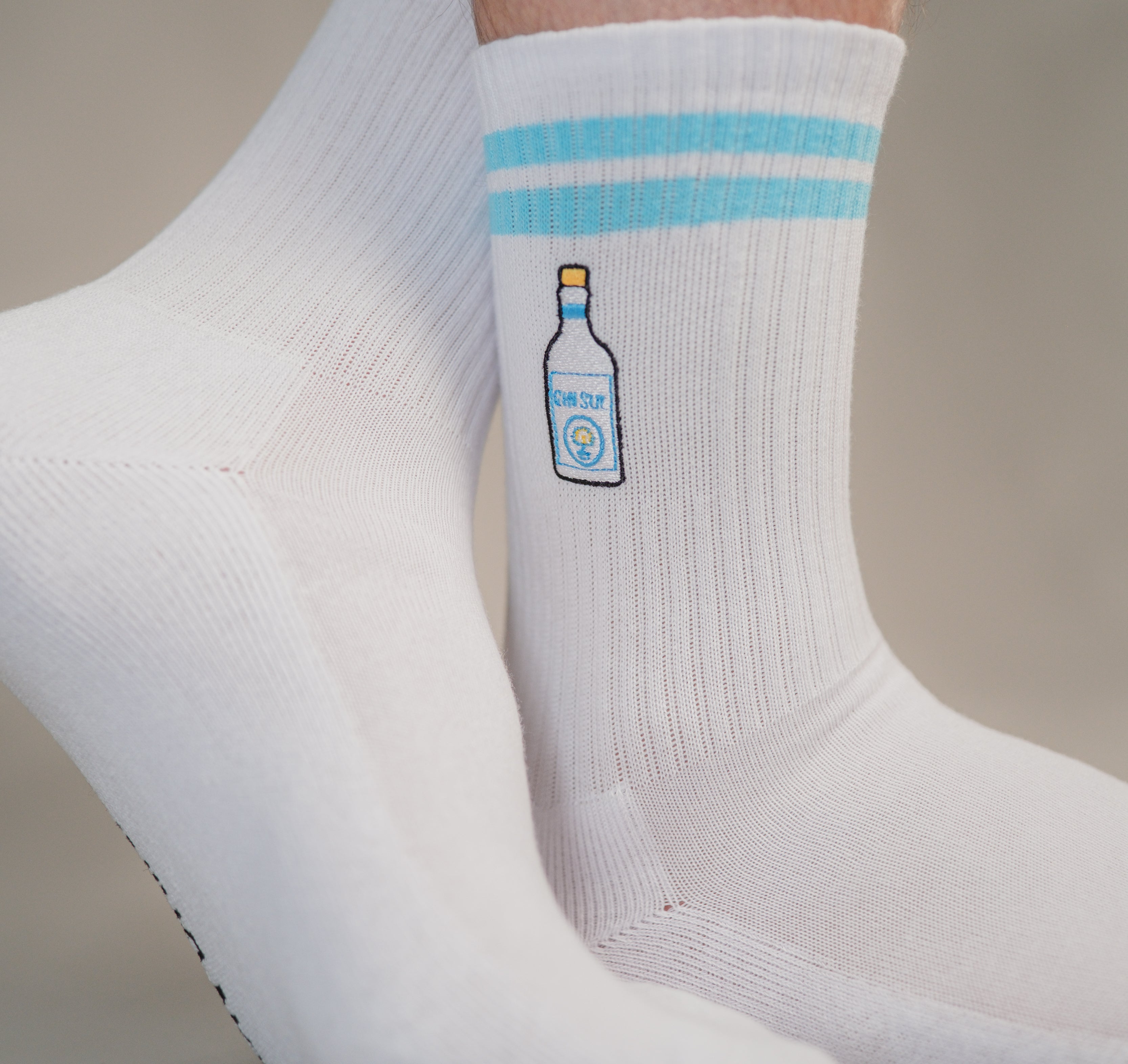Wir sind nicht nur Mode – wir sind ein Lifestyle. Jedes Teil, das wir kreieren, ist inspiriert von ikonischen Getränken, gefertigt aus 100 % Bio-Baumwolle und bestickt mit hochwertigem, ökologischem Garn. Unsere Designs wie Aperol Spritz, Lillet Wildberry oder Jägermeister bestechen durch einen maximalen Detailgrad auf dezenter Größe auf Socken und anderen Textilien. Unser Fokus liegt auf Qualität, Authentizität und einer Leidenschaft für Kreativität.