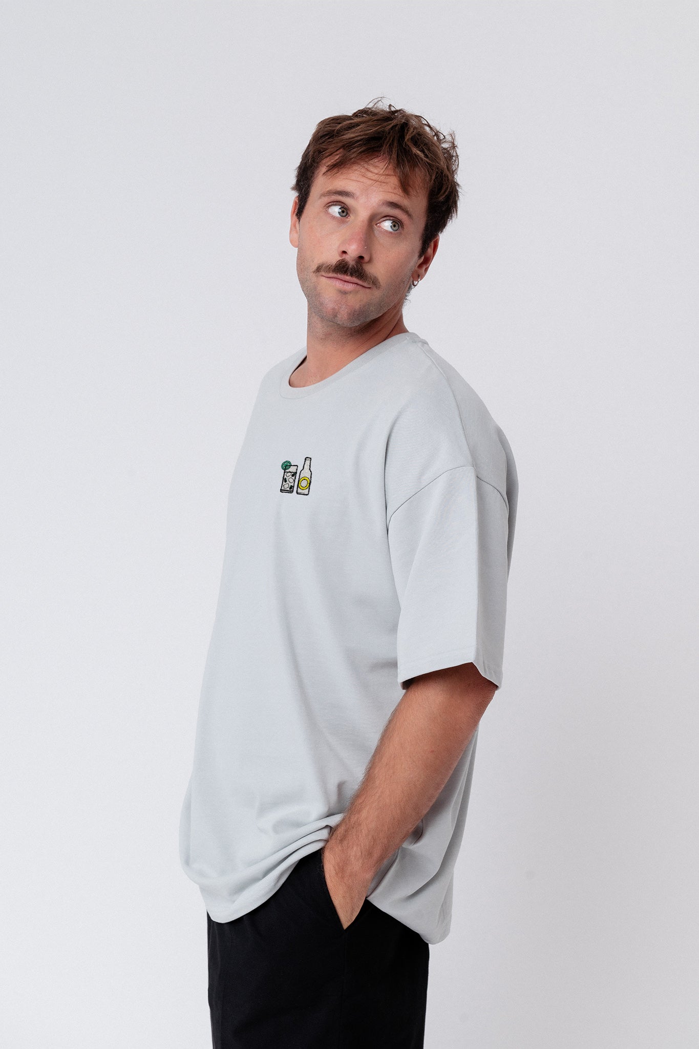Heavy Oversized Bio Baumwoll T-Shirt mit extra schwerem Stoff (230gsm) und dem gestickten Gin Tonic Design