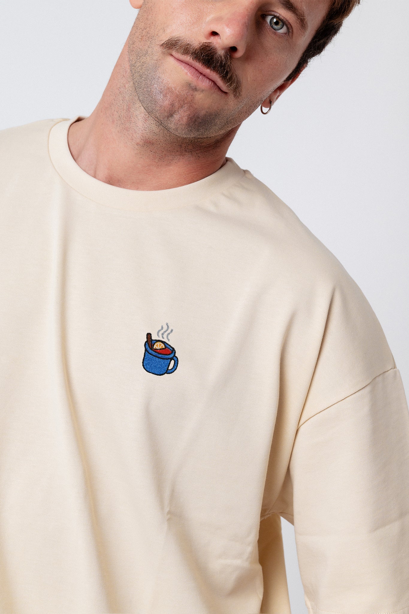 Heavy Oversized Bio Baumwoll T-Shirt mit extra schwerem Stoff (230gsm) und dem gestickten Glühwein Design