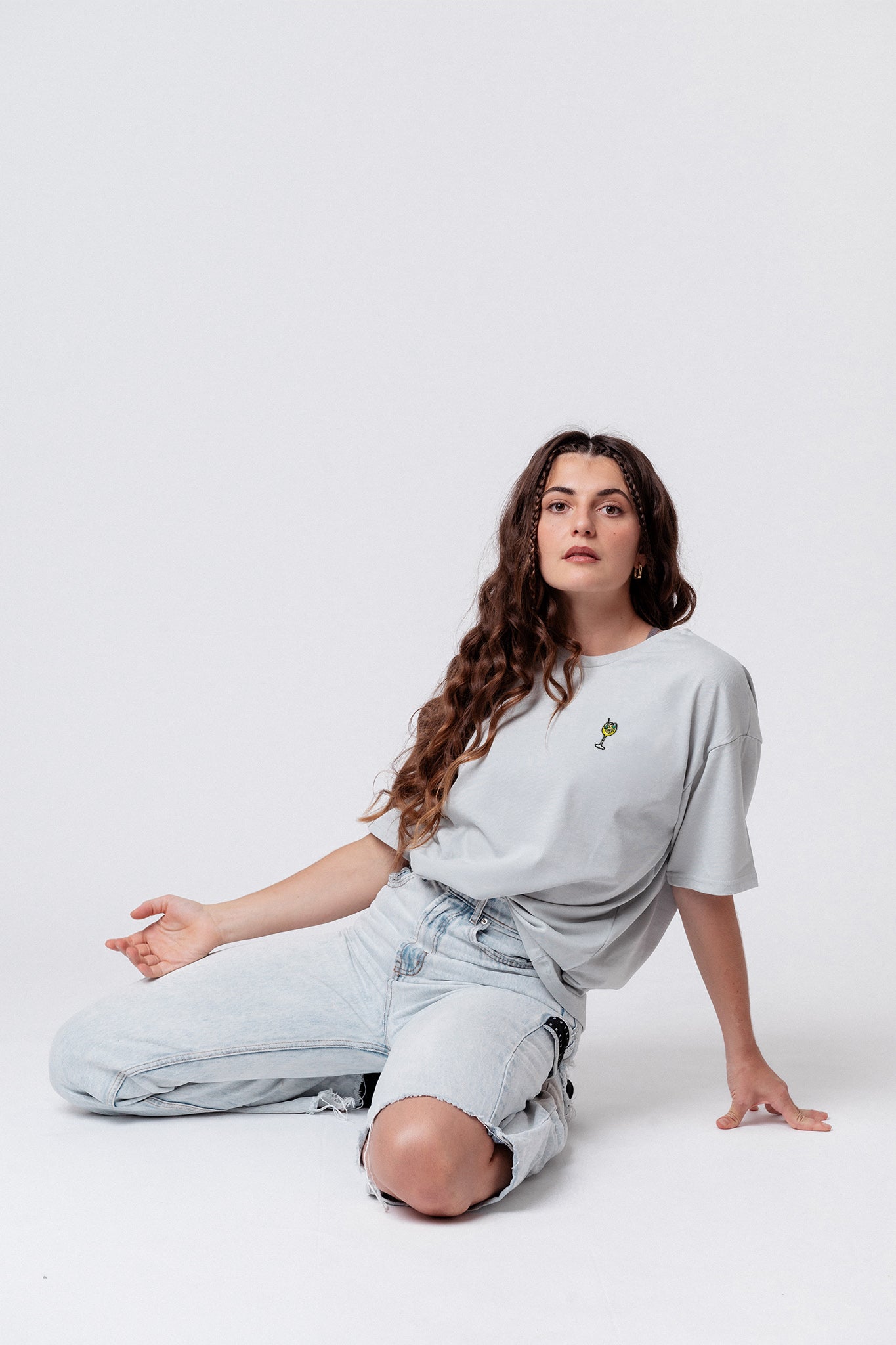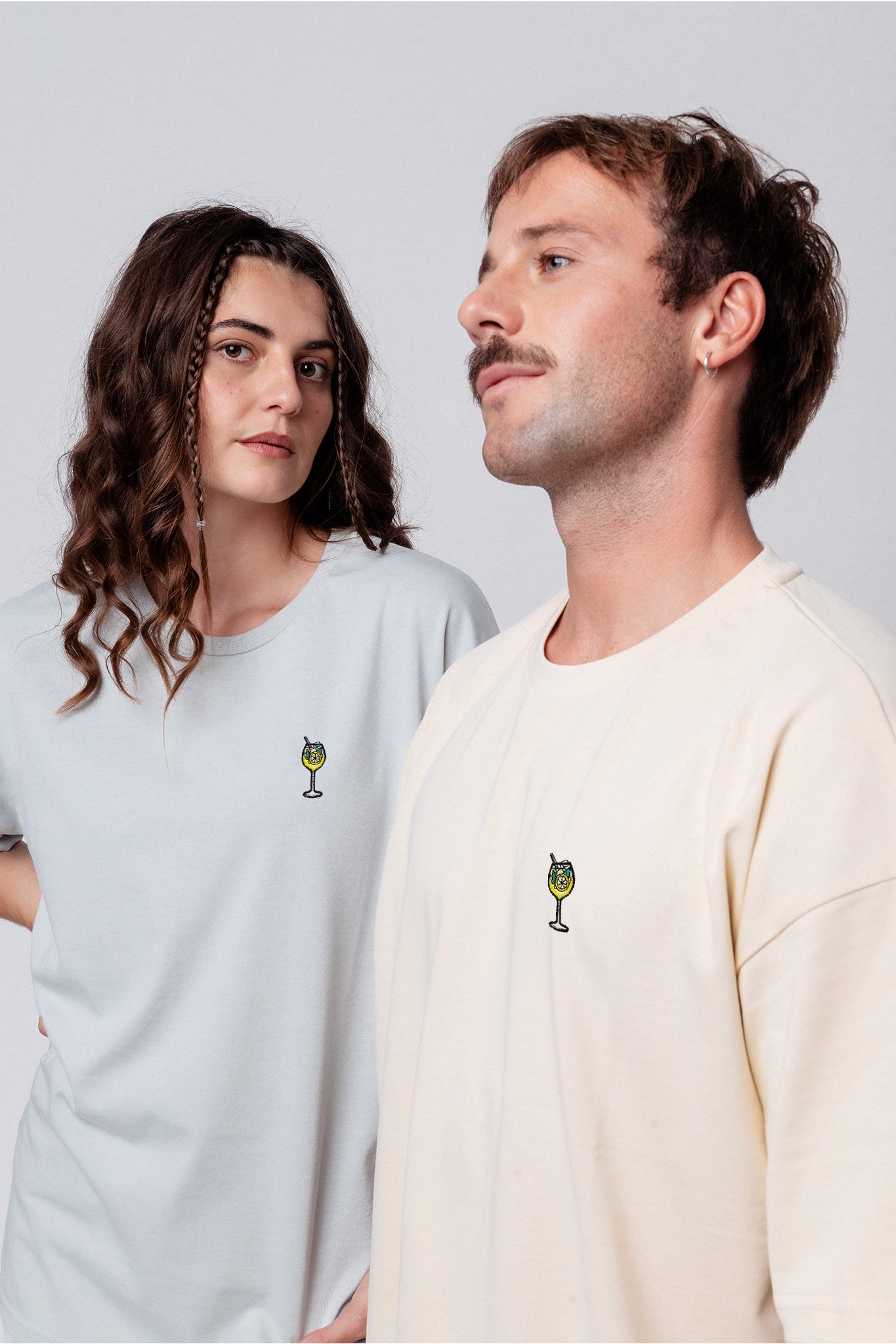 Heavy Oversized Bio Baumwoll T-Shirt mit extra schwerem Stoff (230gsm) und gesticktem Limoncello Spritz Design