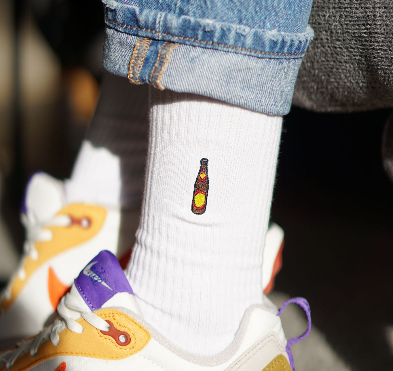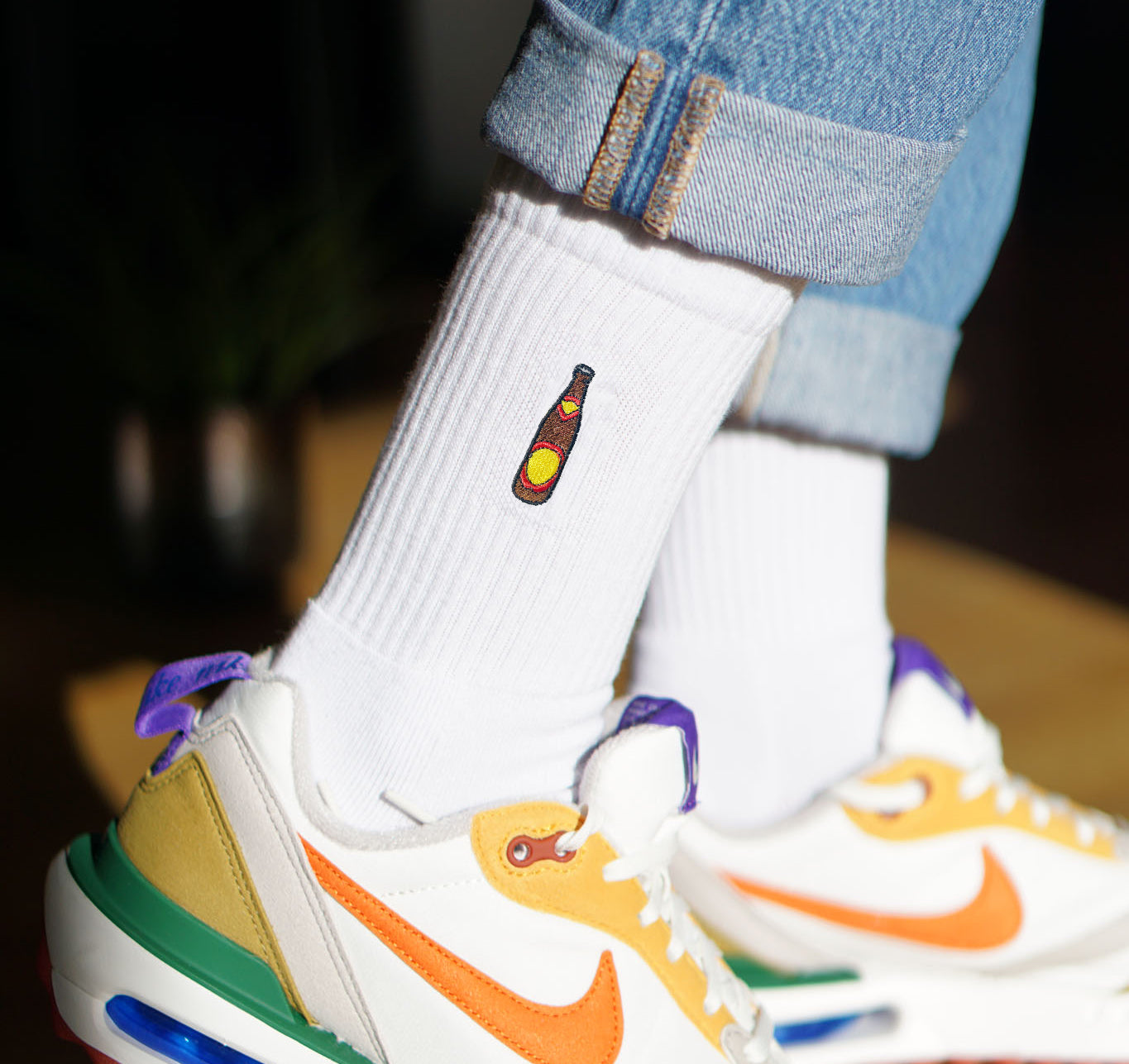 Unsere Fashion Drinks Socken zeichnen sich durch mehrere einzigartige Merkmale aus: Sie bestehen aus atmungsaktiver Bio-Baumwolle, die für ein angenehmes Tragegefühl sorgt. Die doppelt gewebte Sohle garantiert extra Komfort und Haltbarkeit, während der hochwertige Premium-Stick die Socken zu einem echten Hingucker macht. Zudem bieten wir einzigartige Designs mit offiziellen Kooperationen, die die beliebtesten Getränke repräsentieren. So bekommst du nicht nur Komfort, sondern auch einen stylischen Statement-Look!