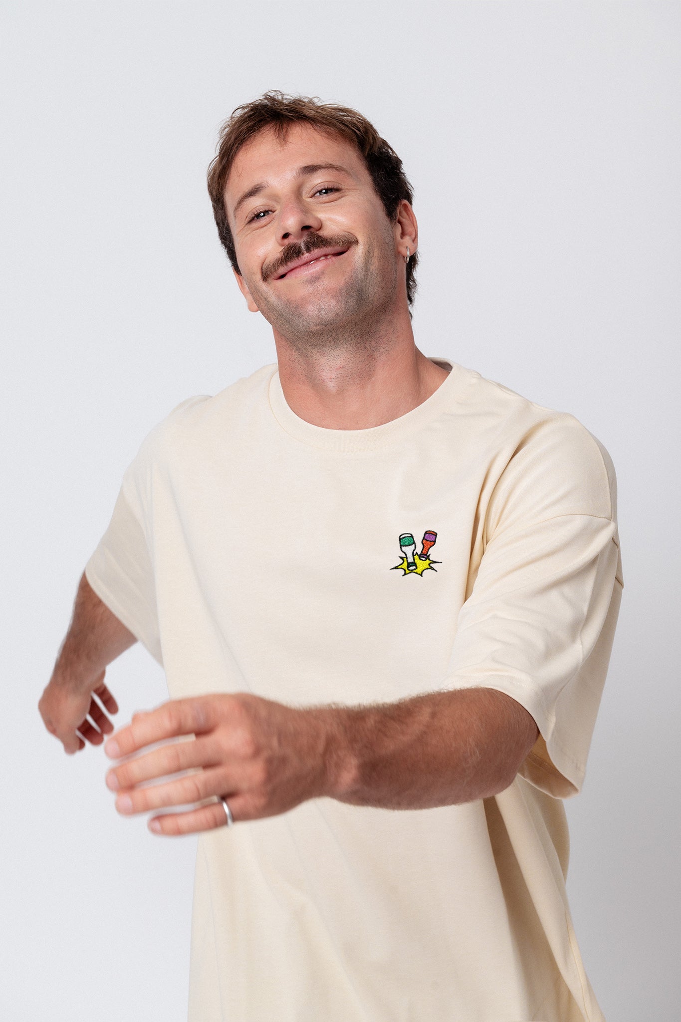 Heavy Oversized Bio Baumwoll T-Shirt mit extra schwerem Stoff (230gsm) und dem offiziellen gestickten Kleiner Klopfer® Diseño