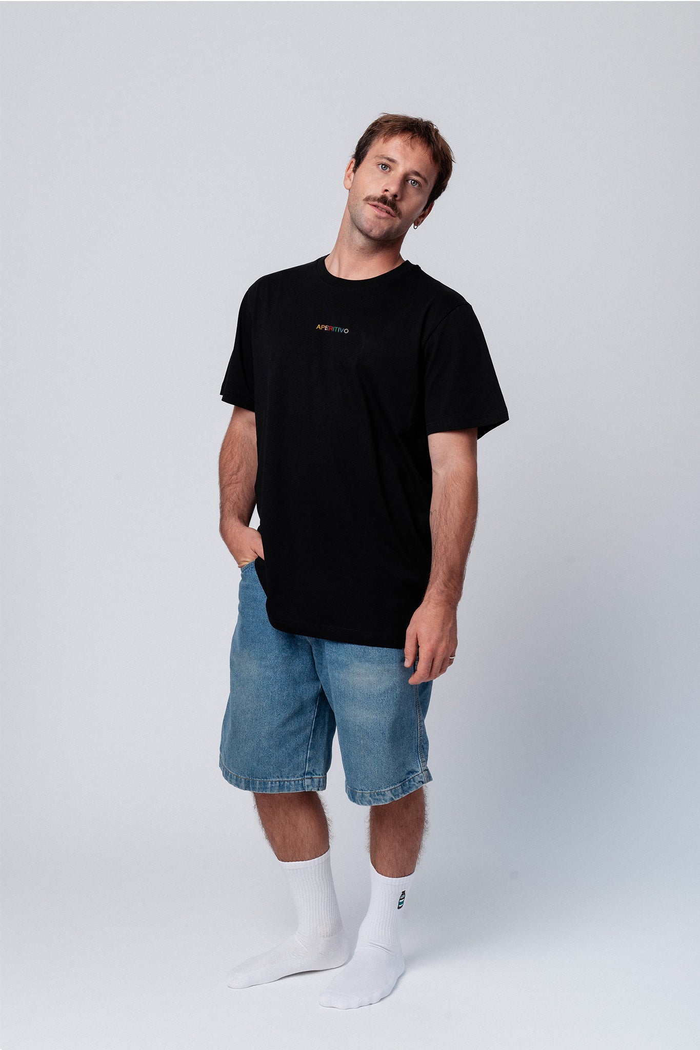 Besticktes Bio Baumwoll Unisex T-Shirt mit schwerem Stoff (190gsm) und gesticktem Aperitivo Schriftzug