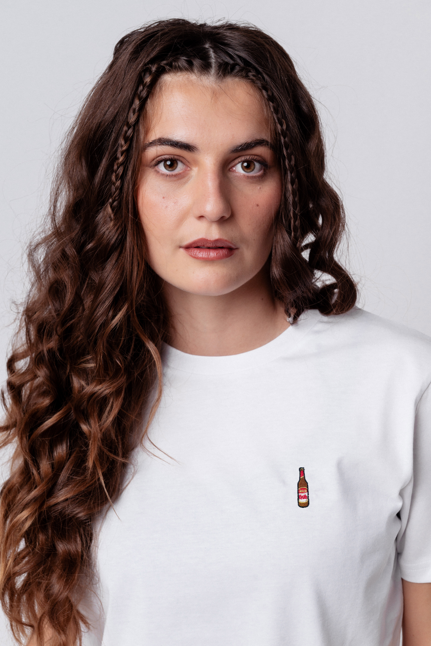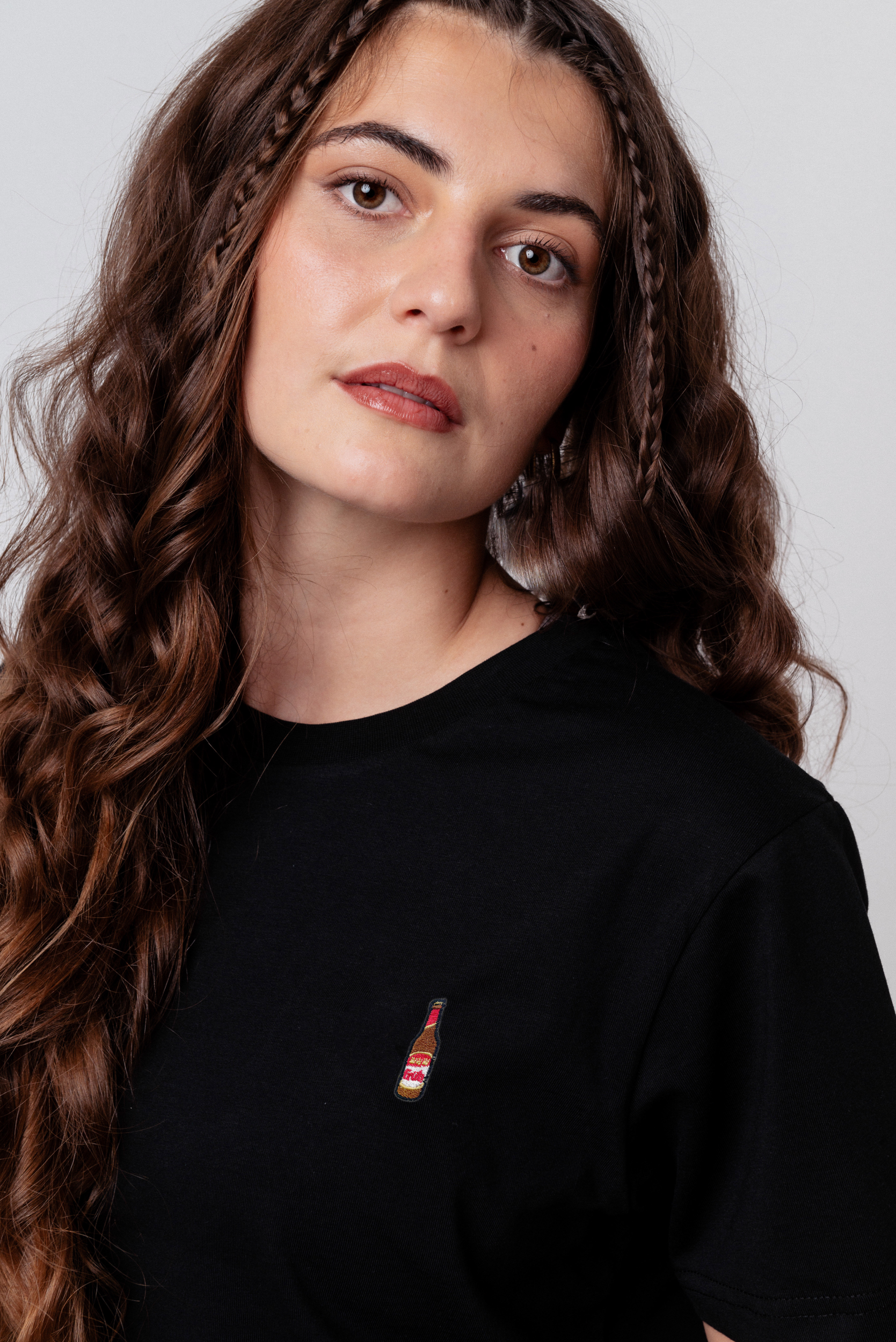 Super hochwertiges Bio Baumwoll Unisex T-Shirt mit schwerem Stoff (190gsm) und der offiziell gestickten Früh Kölsch Flasche