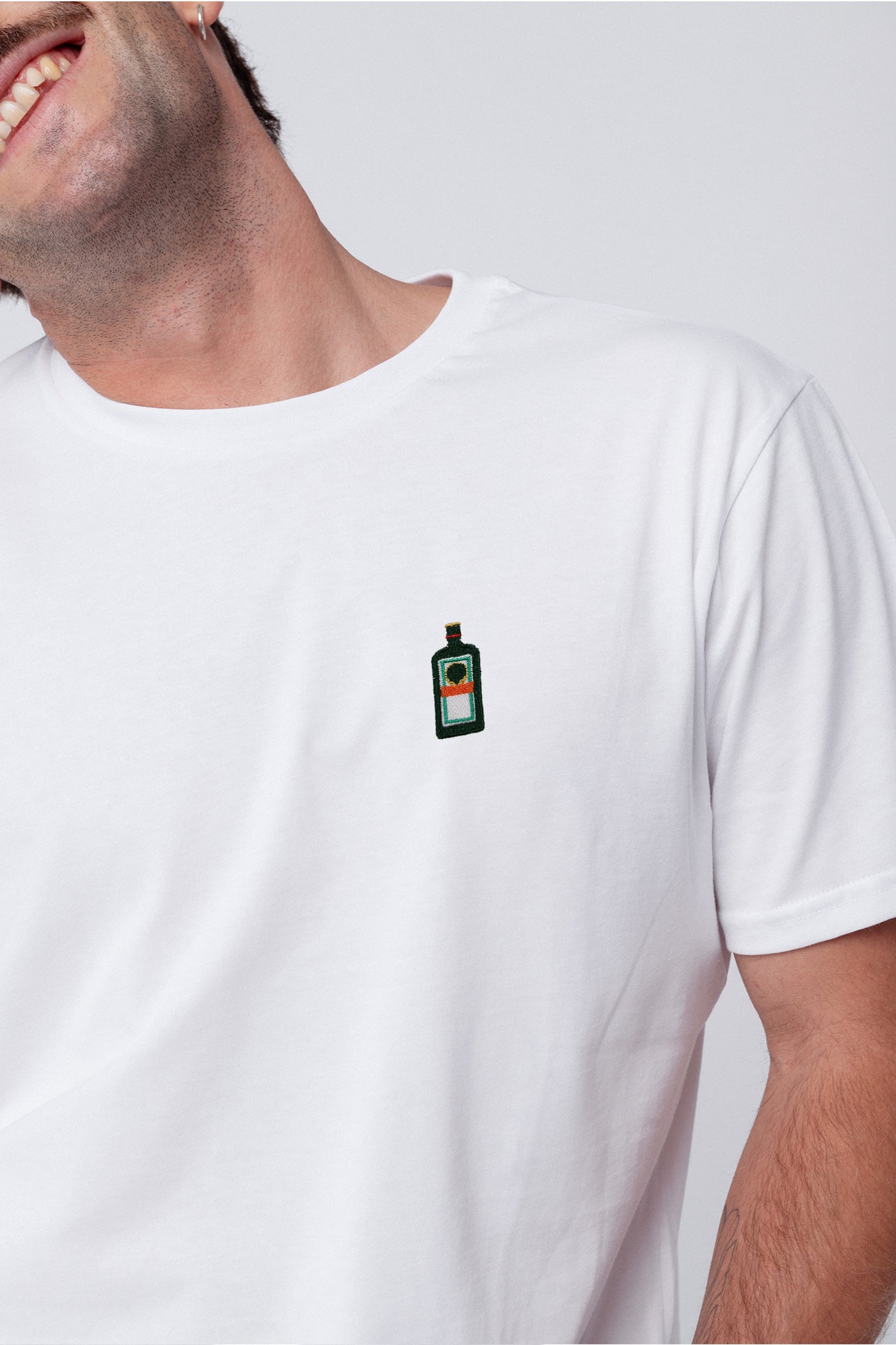 Besticktes Bio Baumwoll Unisex T-Shirt mit schwerem Stoff (190gsm) und der offiziellen gestickten Jägermeister Flasche