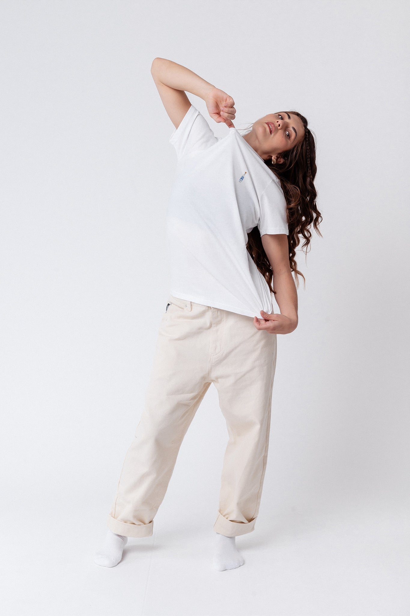 Unsere T-Shirts gibt es in 3 Schnitten: Unisex, Frauen und Oversized. Wir entwickeln die Schnitte unserer Shirts selbst mit unserer Produktion in Abstimmung und haben die Shirts über 4 Jahre immer weiter entwickelt. Alle T-Shirts haben einen festen Stoff, da wir eine gewisse dicke für die Stickerei benötigen und auch ein langlebiges Produkt herstellen wollen, dass sich nicht verzieht. Die genaue Passform könnt ihr in der jeweiligen Größentabelle ansehen.