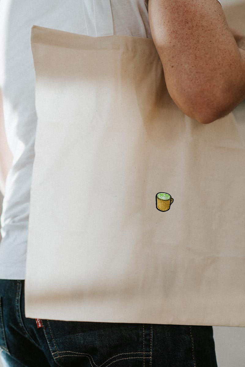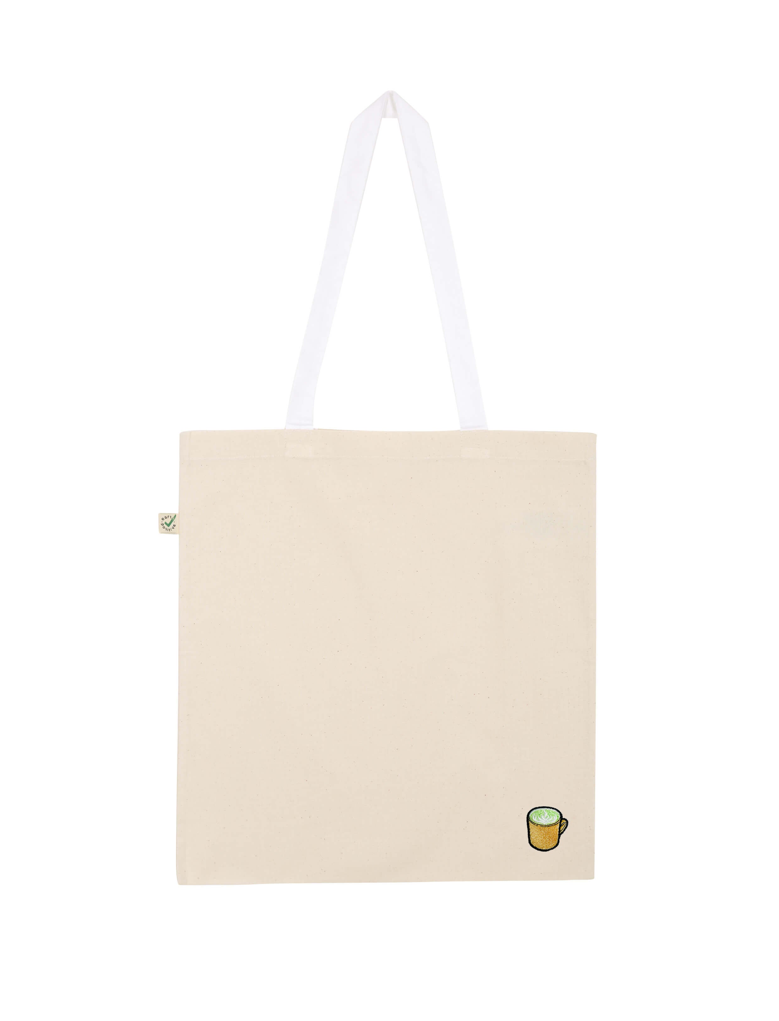 Matcha Latte | Bestickte Bio Baumwoll Tragetasche