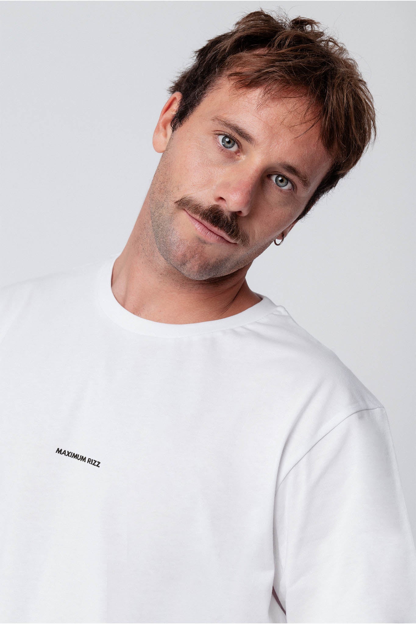 Besticktes Bio Baumwoll Unisex T-Shirt mit schwerem Stoff (190gsm) und gesticktem MAXIMUM RIZZ Schriftzug