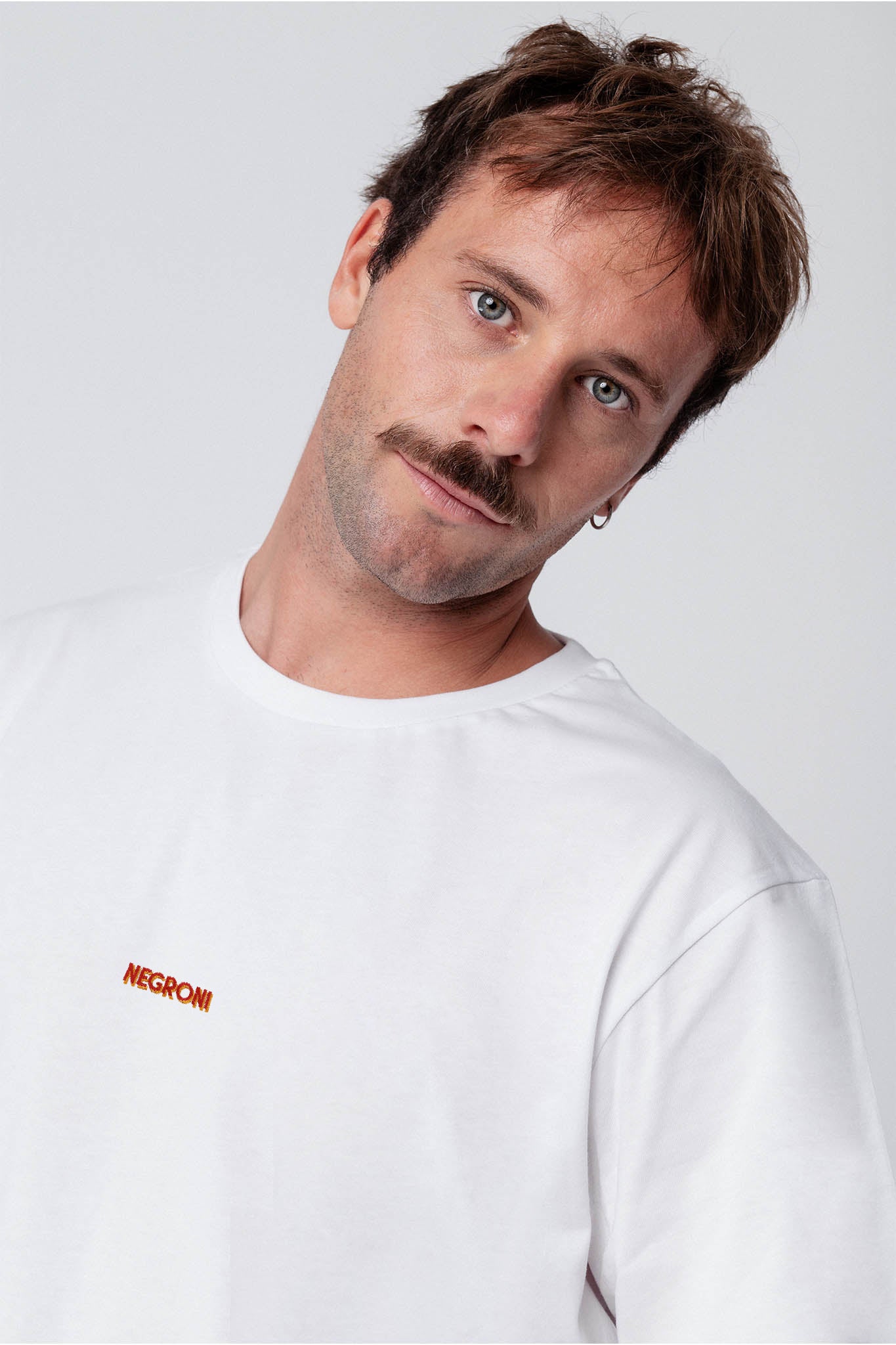 Besticktes Bio Baumwoll Unisex T-Shirt mit schwerem Stoff (190gsm) und gesticktem Negroni Signature Design.