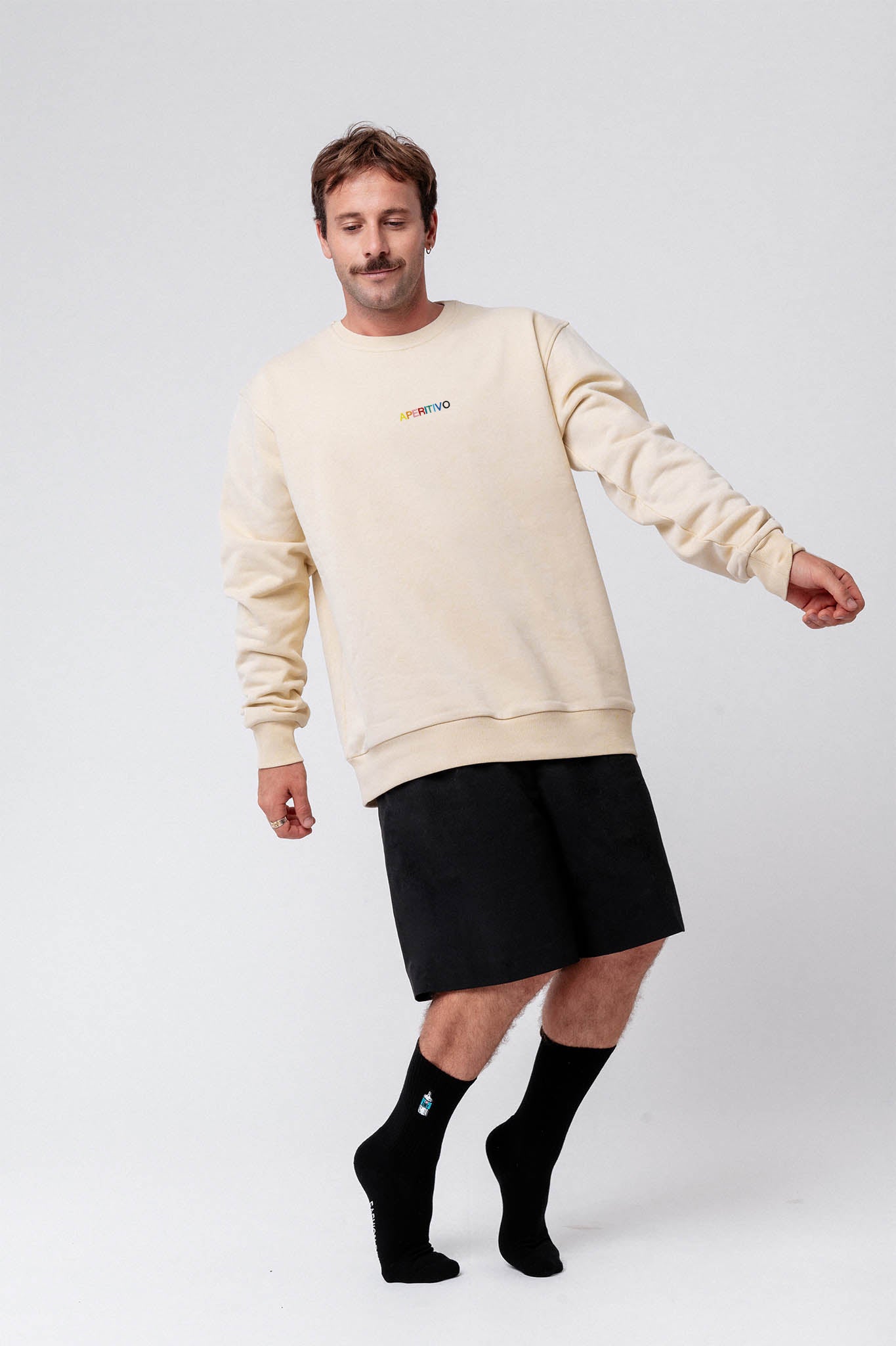 Super hochwertiger Bio Baumwoll Unisex Pullover mit schwerem Stoff (320gsm) und gesticktem Aperitivo Schriftzug
