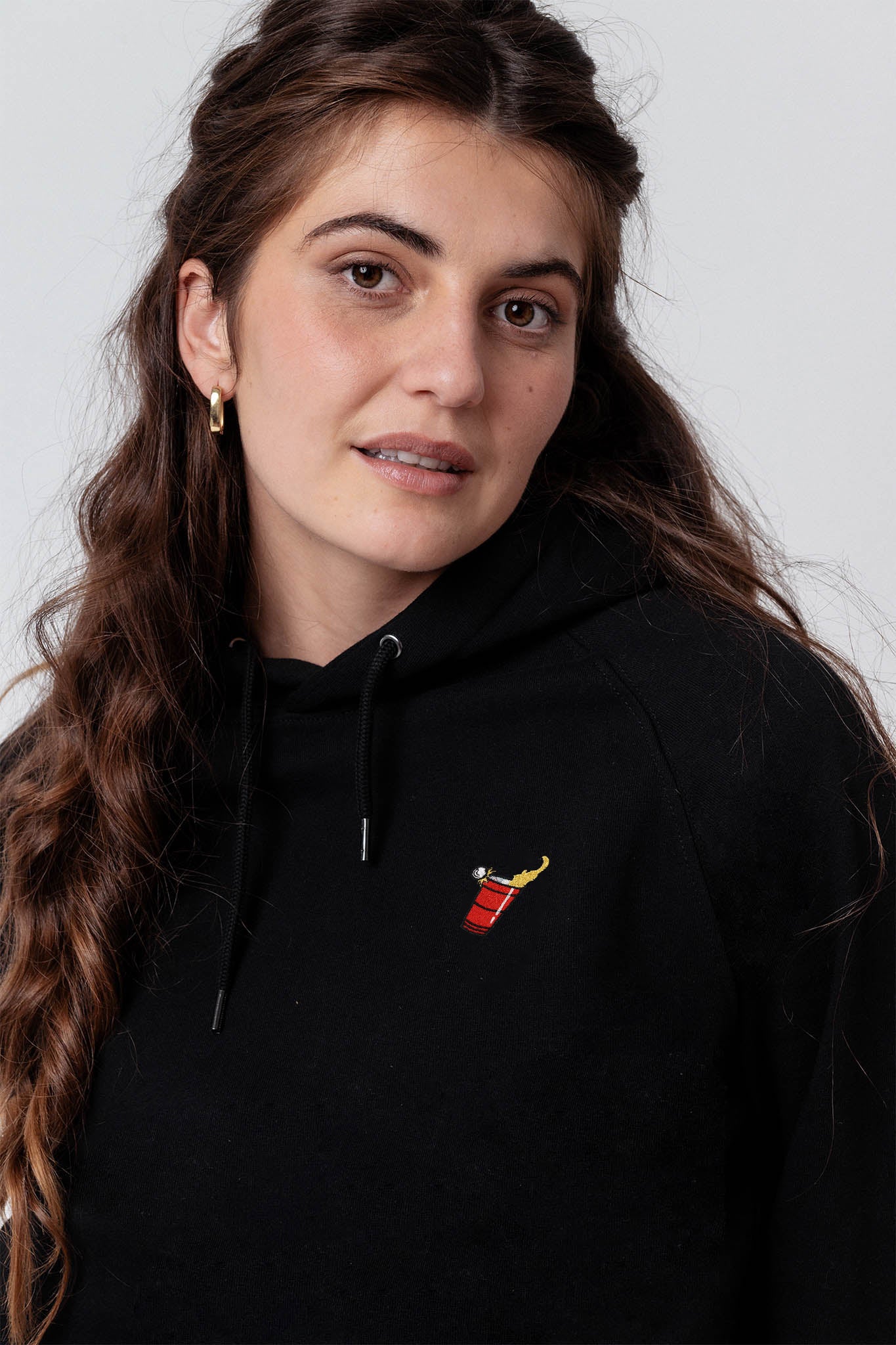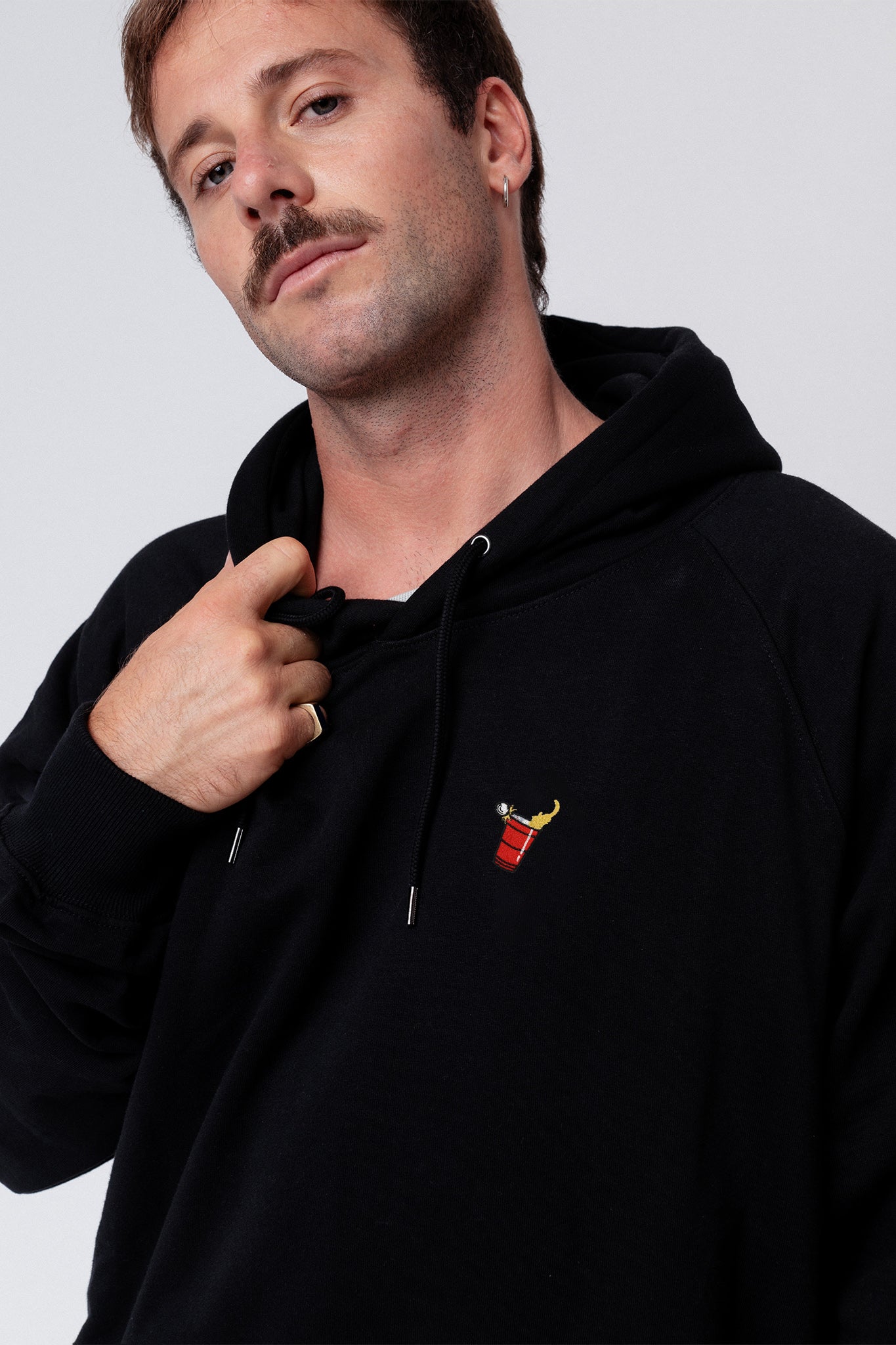 Super hochwertiger Bio Baumwoll Unisex Hoodie mit schwerem Stoff (350gsm) und gesticktem Beerpong Randtreffer Design
