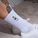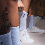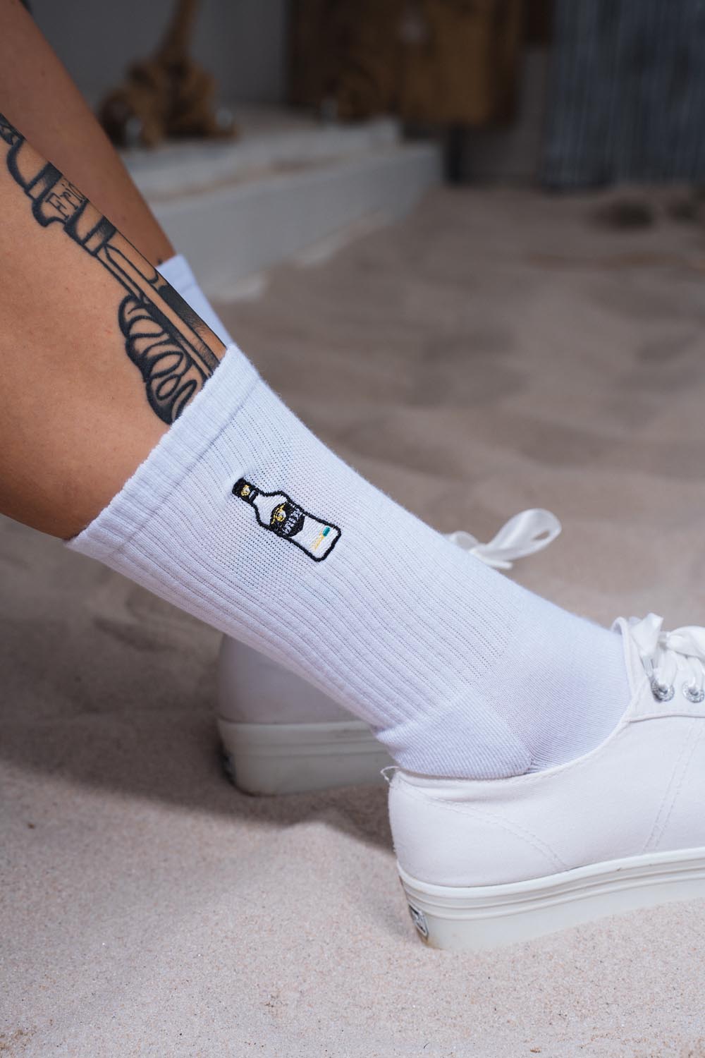 Super hochwertige Bio Baumwoll Crew Socken mit gesticktem offiziellem Mangaroca Batida de Côco® Design
