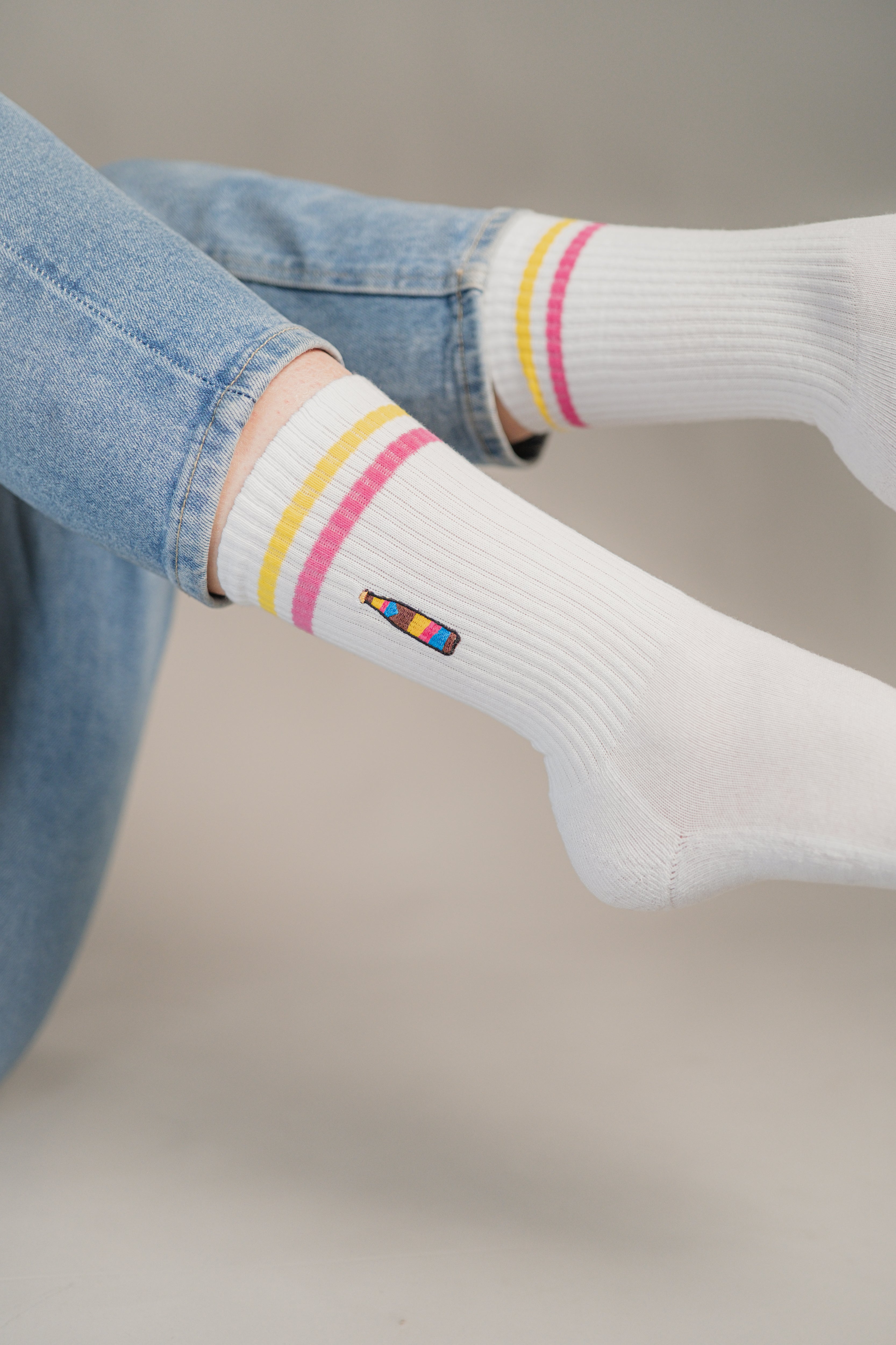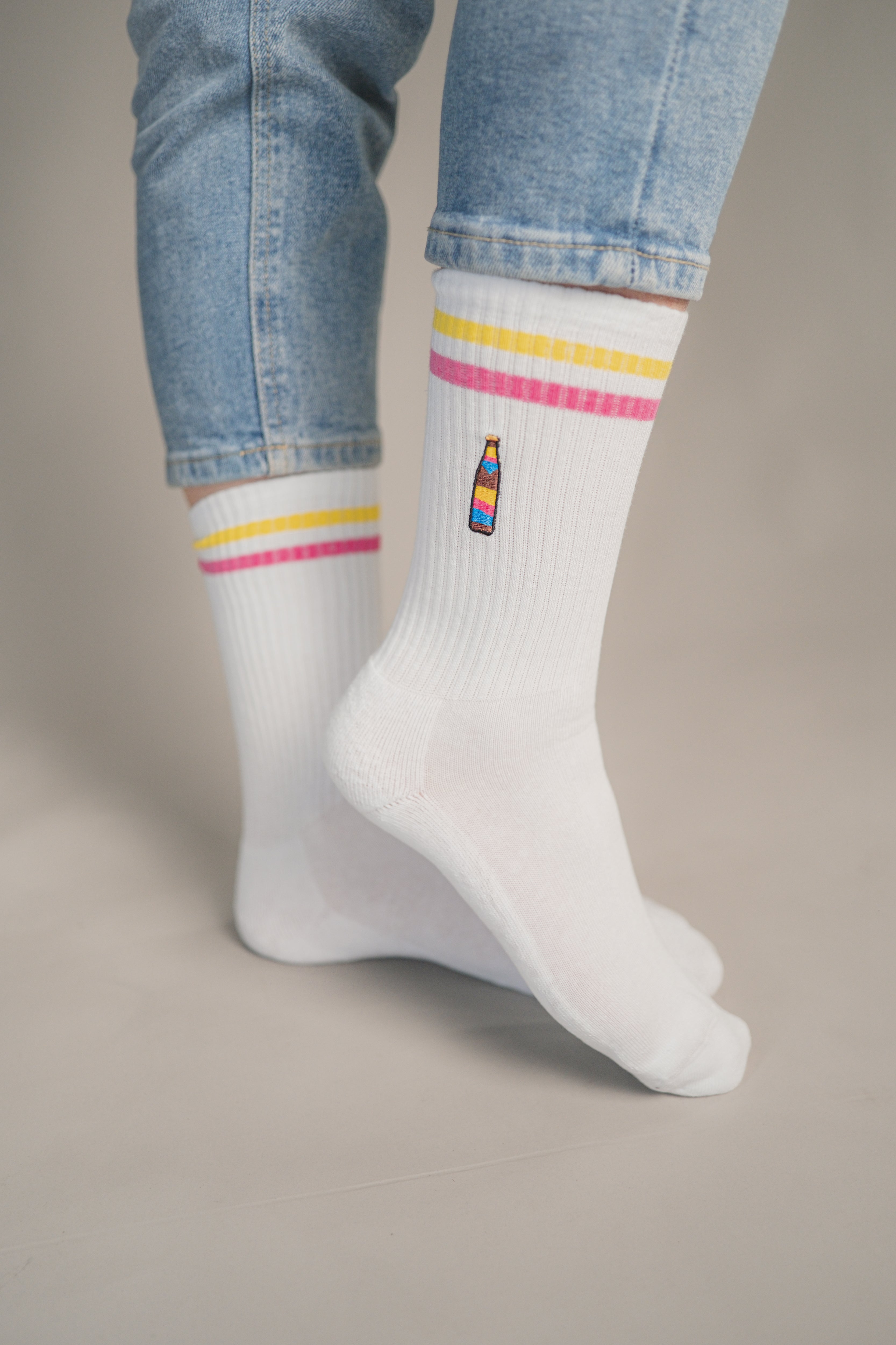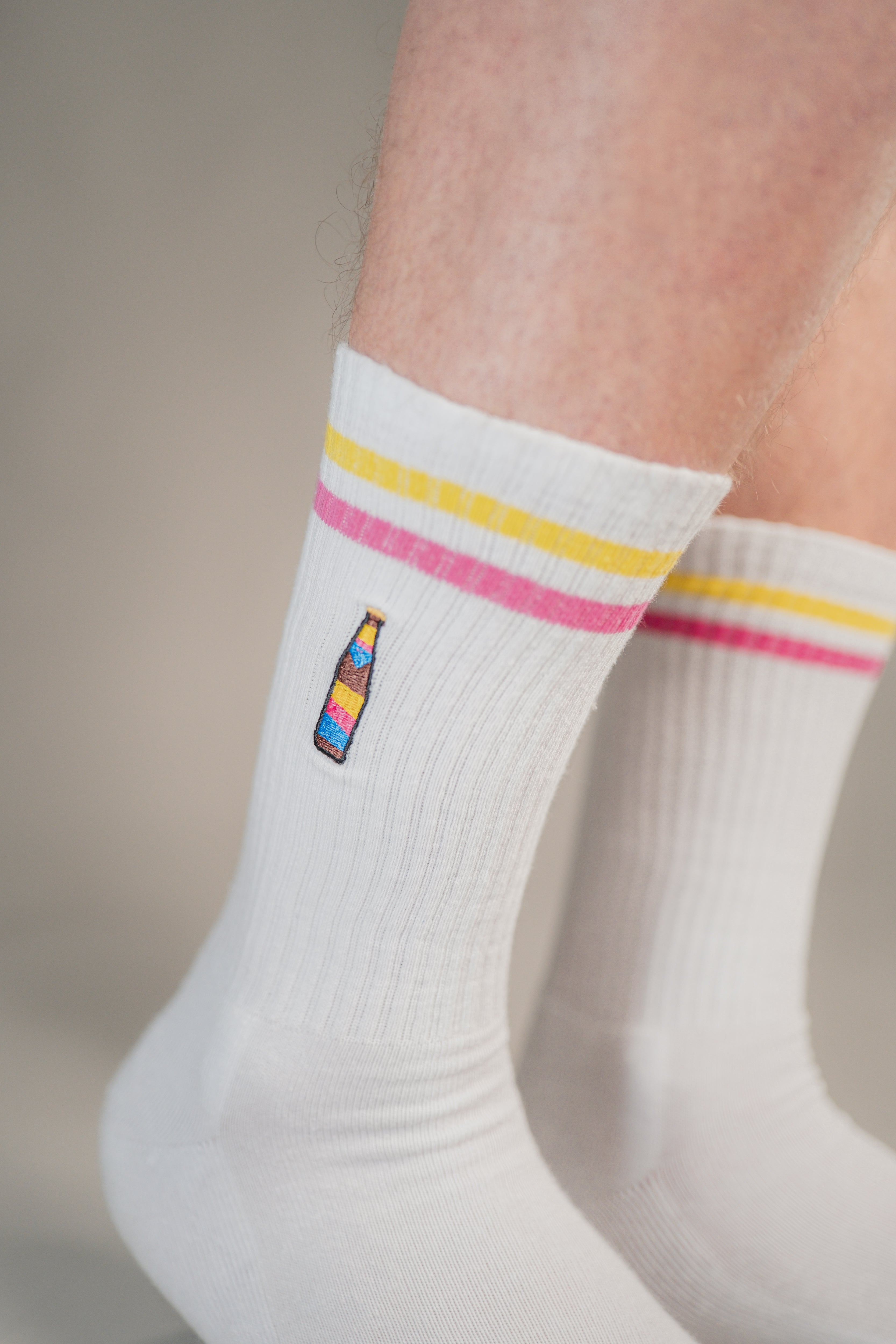 Fashion Drinks bietet eine einzigartige Kombination aus exklusiven, handgezeichneten Designs, hoher Qualität und Nachhaltigkeit. Nur bei uns findest du Socken mit extrem detaillierter Stickerei. Unsere Socken, darunter beliebte Marken wie Underberg, Bionade und Früh Kölsch, sind aus 80 % zertifizierter Bio-Baumwolle gefertigt. Sie bieten nicht nur ein tolles Tragegefühl, sondern auch schnellen Versand – ideal für jede Gelegenheit! Wir arbeiten mit über 30 Partnern aus der Getränkeindustrie zusammen und bieten exklusive, offizielle Designs, die du nur bei uns findest.
