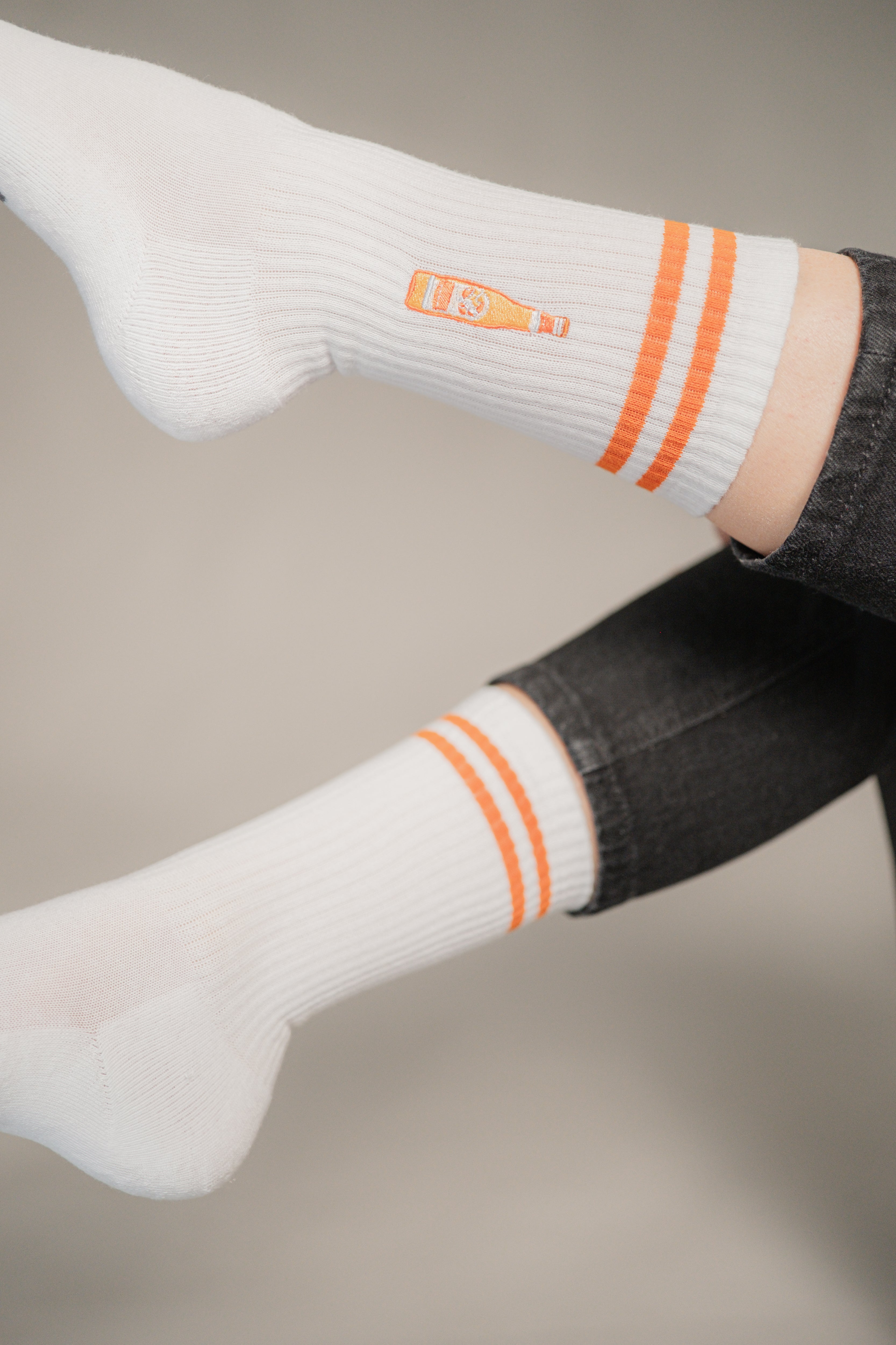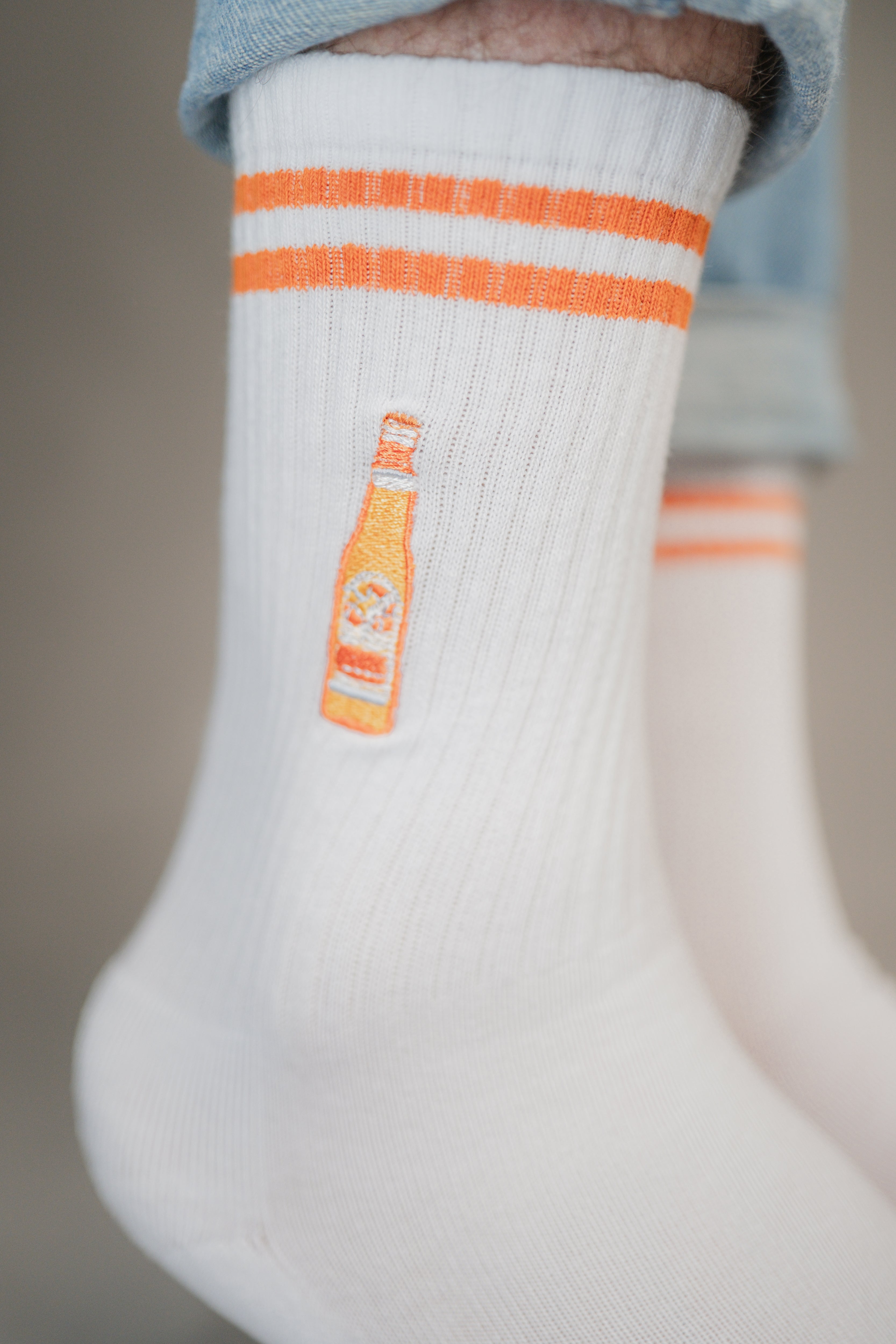 Super hochwertige Bio Baumwoll Crew Socken mit gesticktem offiziellem Somersby® Orange Spritz Design