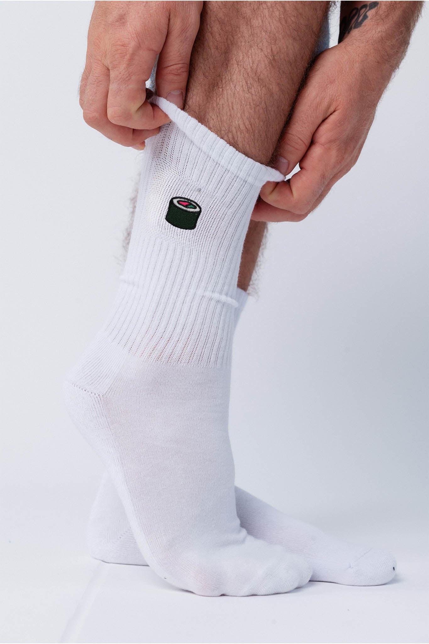 Super hochwertige Bio Baumwoll Crew Socken mit gesticktem Sushi Maki Design