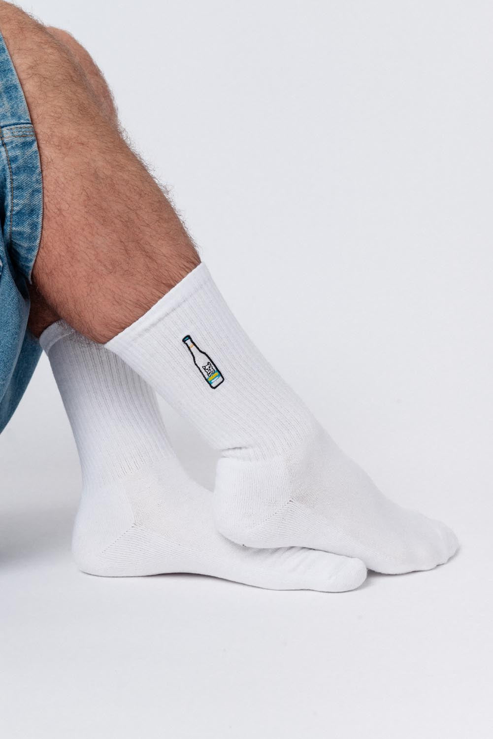 Super hochwertige Bio Baumwoll Crew Socken mit gesticktem WINZZ Weinschorle Design