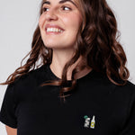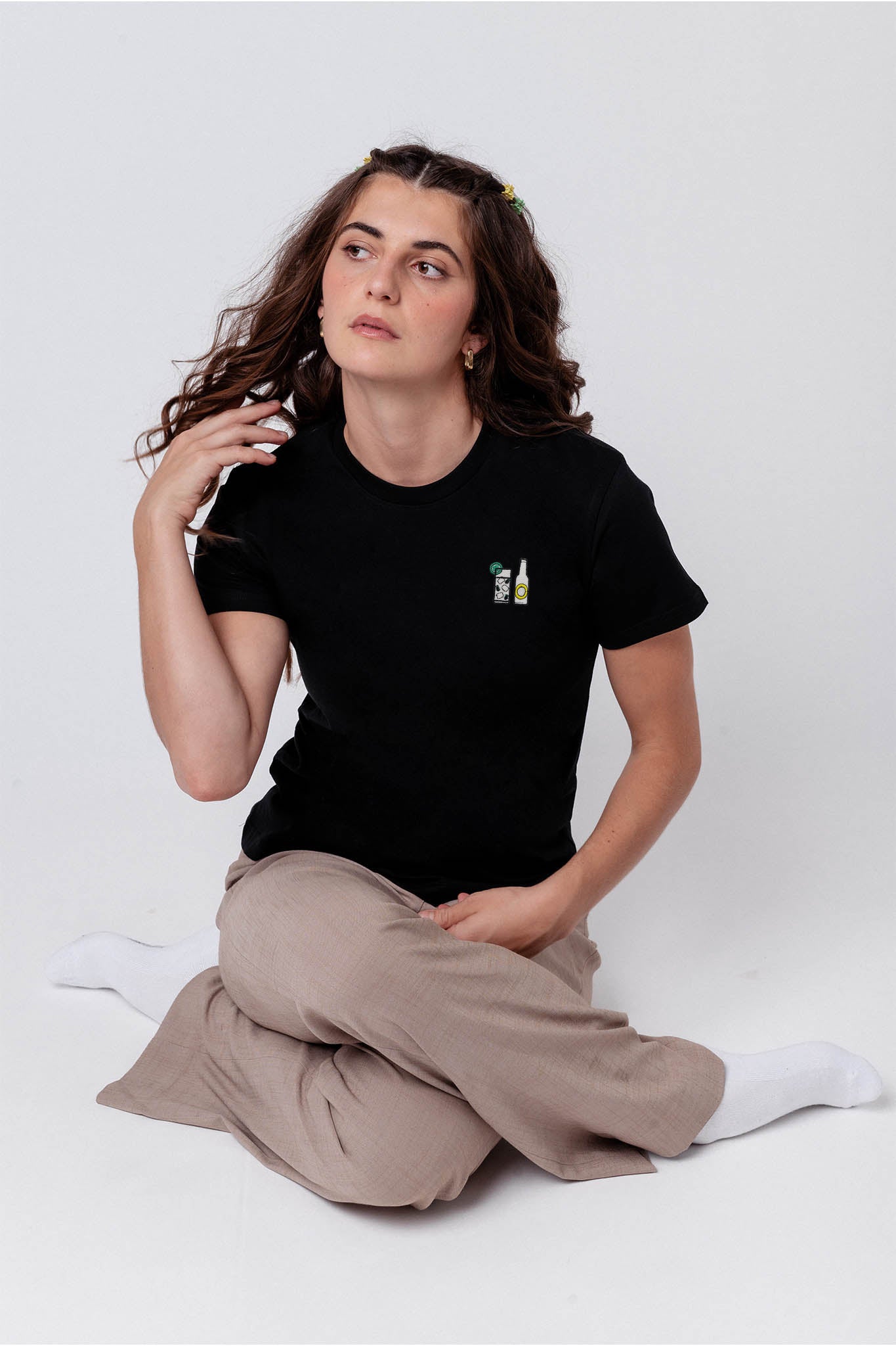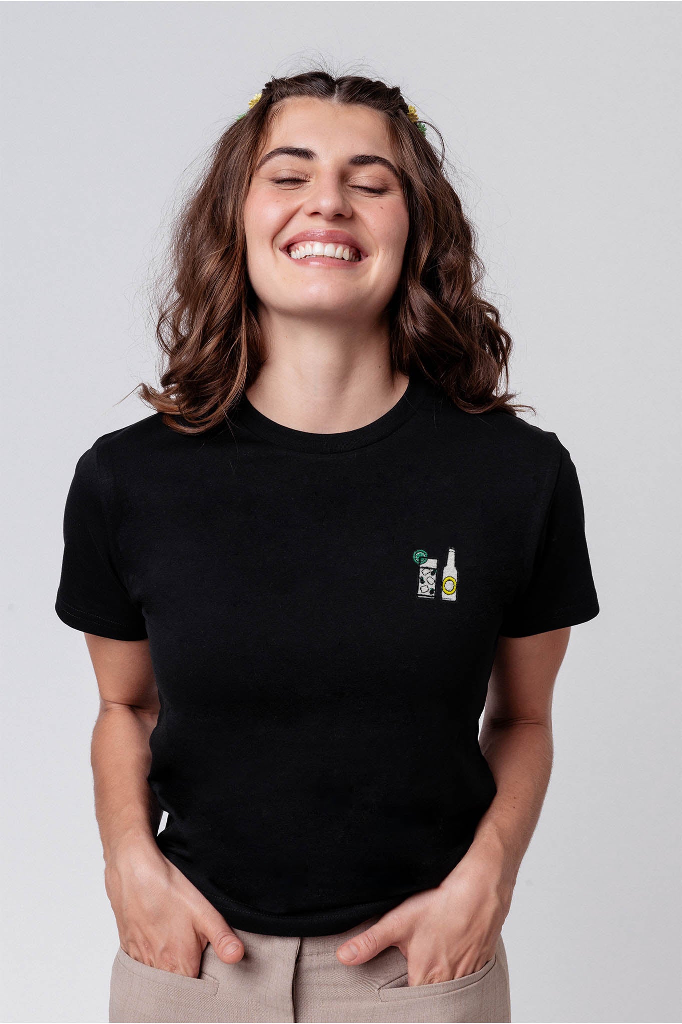 Besticktes Bio Baumwoll Frauen T-Shirt mit extrem angenehmen Stoff (155gsm) und gesticktem Gin Tonic Design