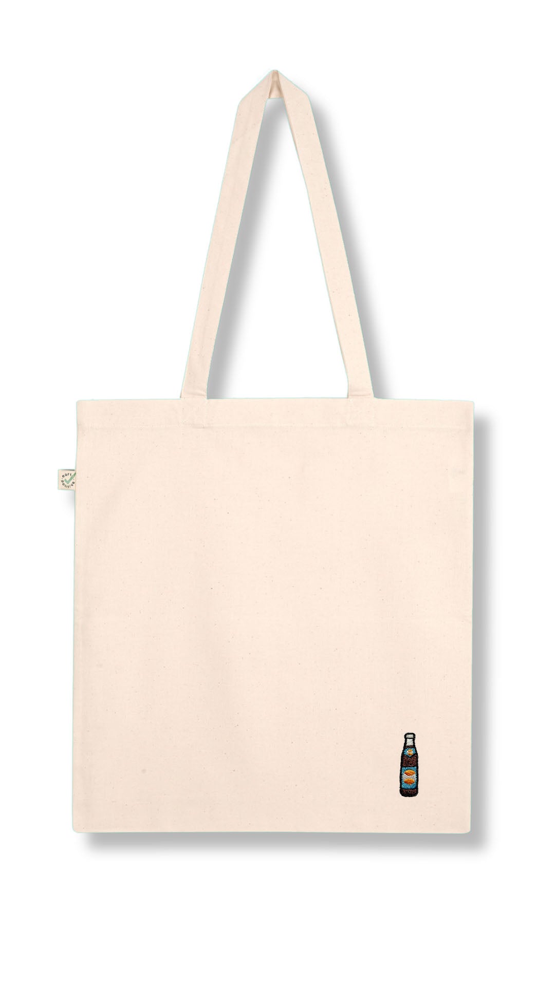 Bestickte, fair produzierte Bio-Baumwoll-Tragetasche im offiziellen Original Spezi© Design.