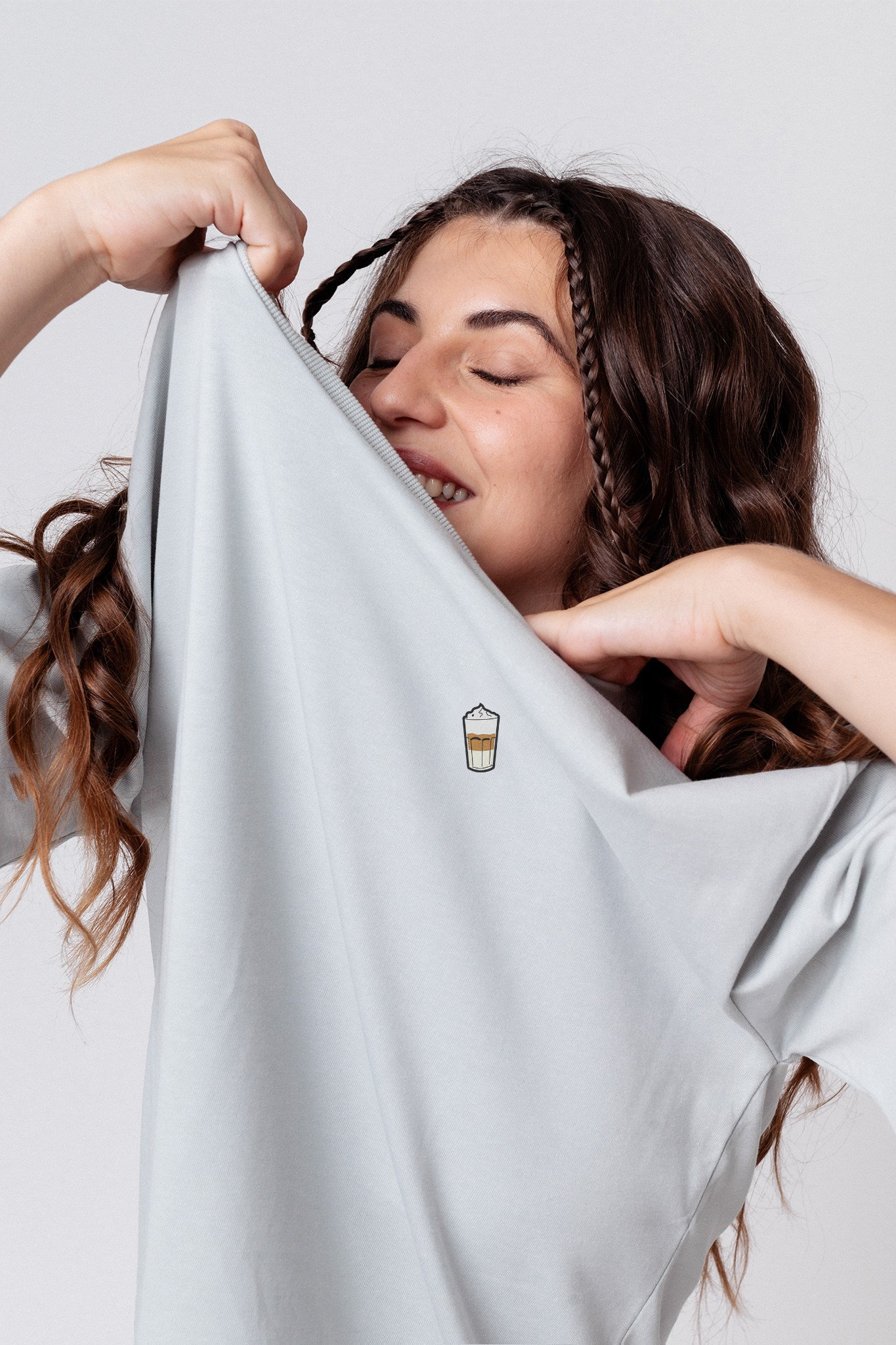Heavy Oversized Bio Baumwoll T-Shirt mit extra schwerem Stoff (230gsm) und gesticktem Latte Macchiato Design