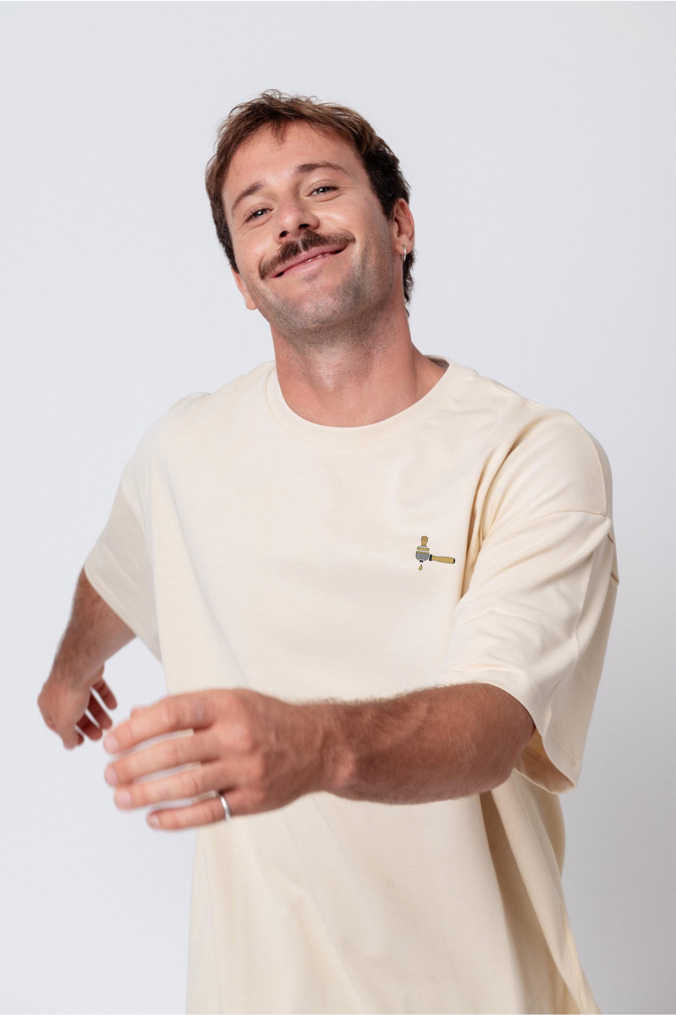Heavy Oversized Bio Baumwoll T-Shirt mit extra schwerem Stoff (230gsm) und gesticktem Siebträger & Tamper Design