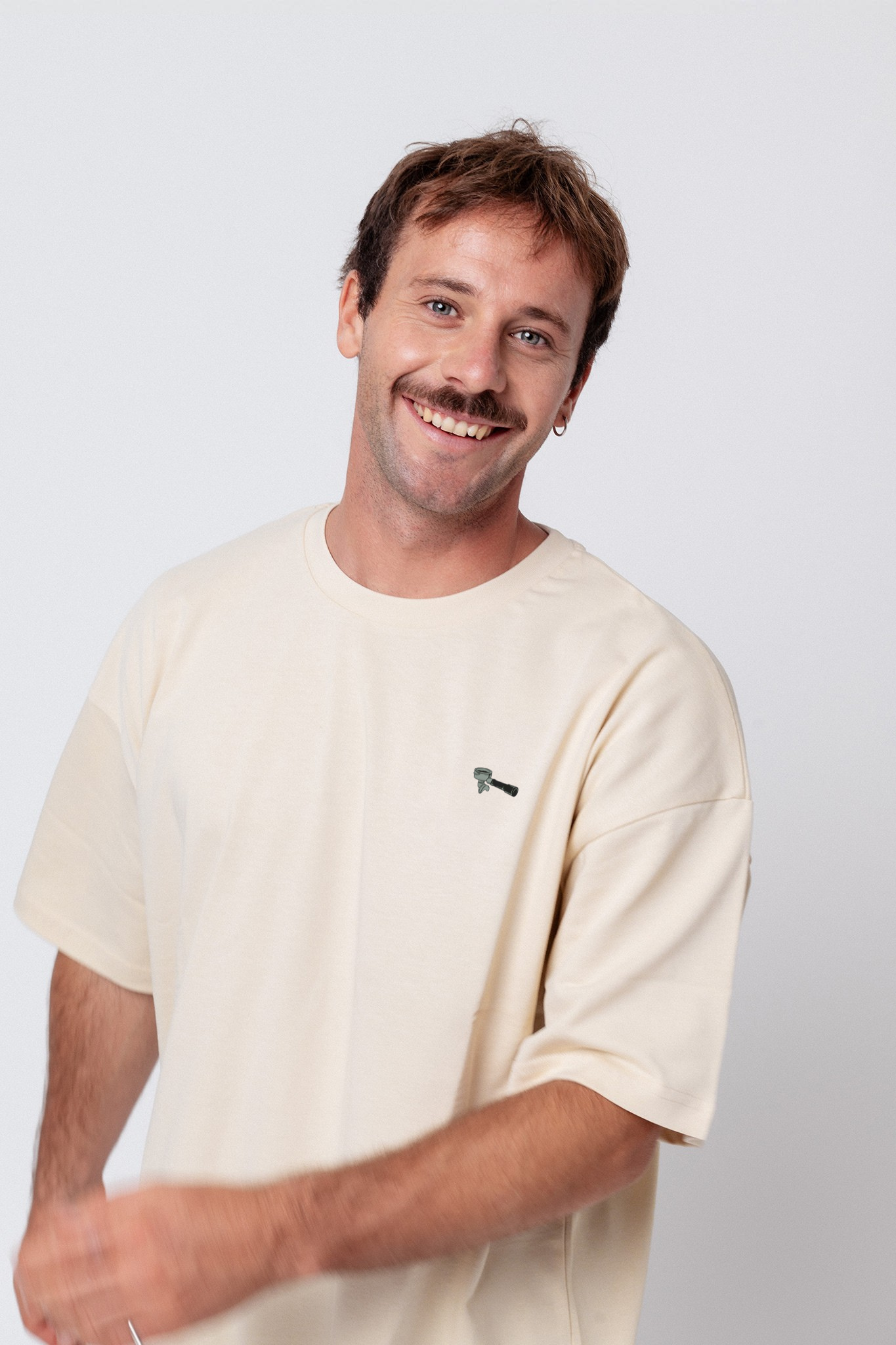 Heavy Oversized Bio Baumwoll T-Shirt mit extra schwerem Stoff (230gsm) und gesticktem Siebträger Design
