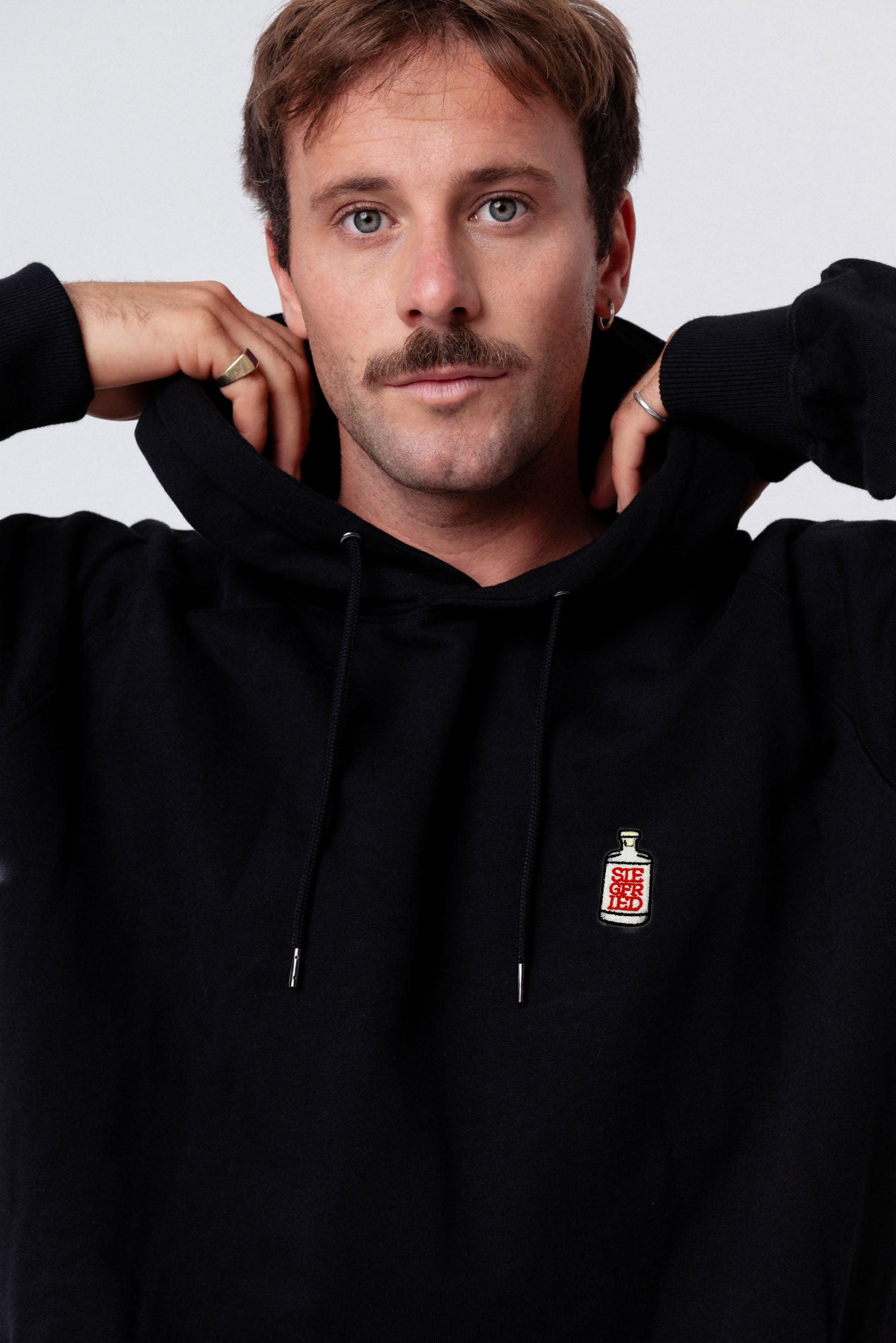 Bestickter Bio Baumwoll Unisex Hoodie mit schwerem Stoff (350gsm) und offiziellem gesticktem Siegfried Gin Design