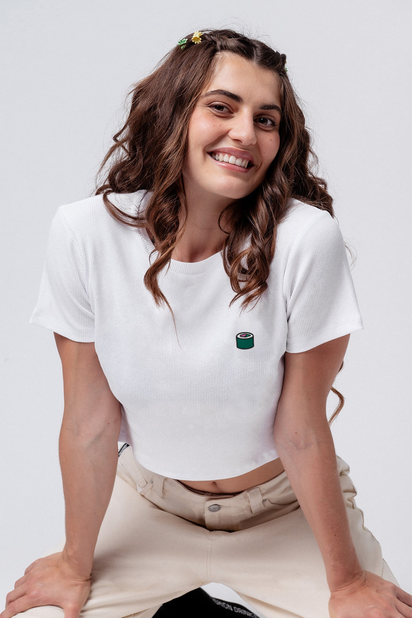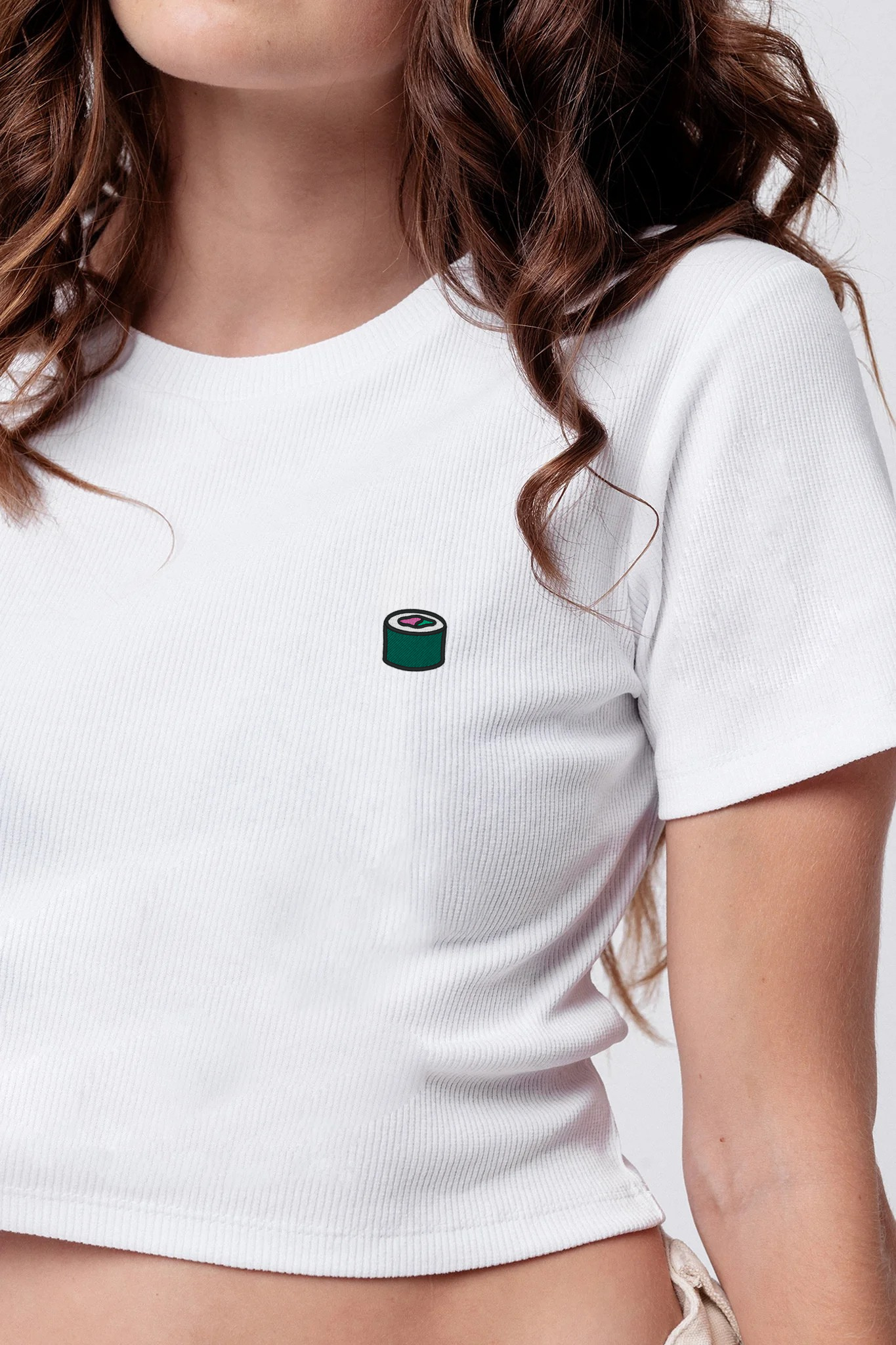 Sushi Maki | Besticktes Bio Baumwoll Cropped T-Shirt