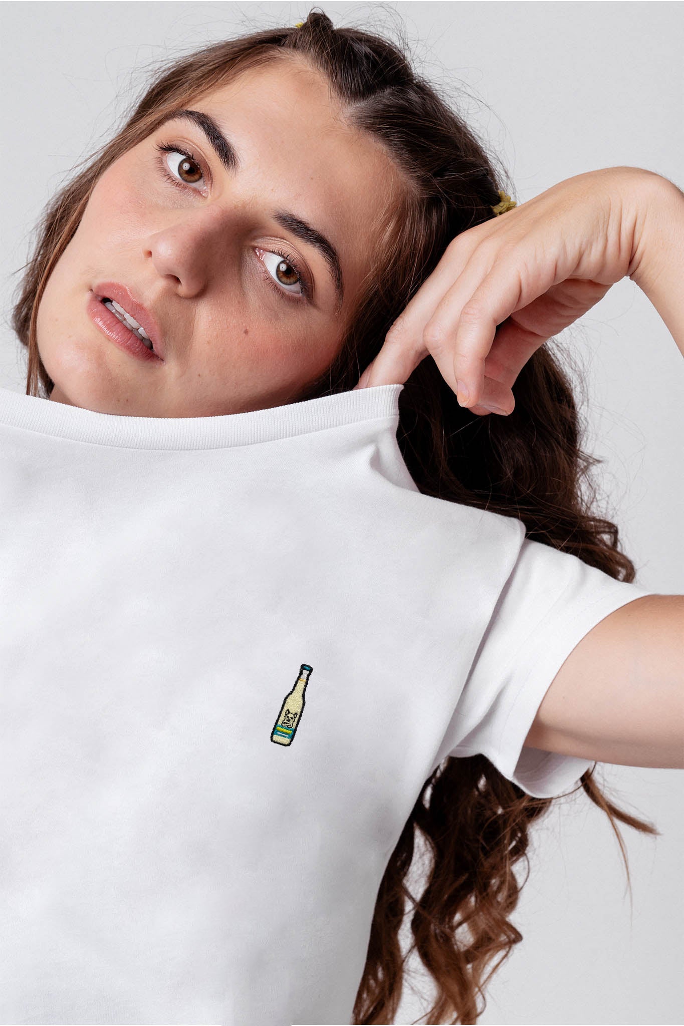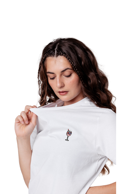 Super hochwertiges Bio Baumwoll Frauen T-Shirt mit extrem angenehmen Stoff (155gsm) und gesticktem WINZZ Weinschorle Design